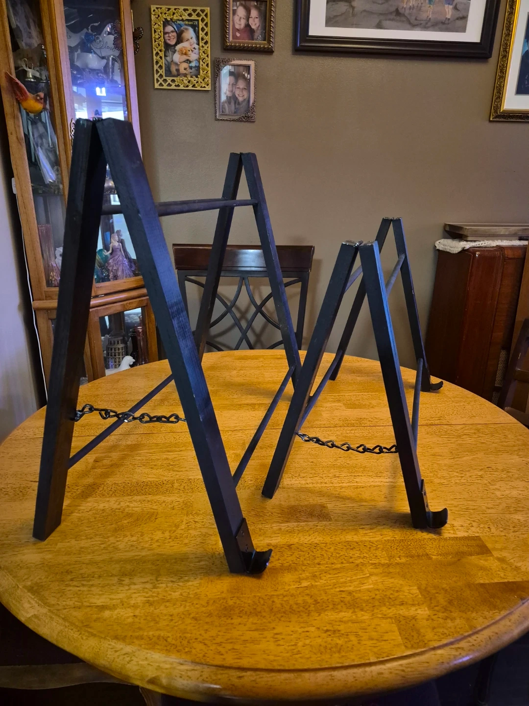 Pair of Hand Made Board Picture Poster etc. Table or Floor Stands each holds 22" or wider 22" x 15 1/2" and larger one is 22" x 20 1/2" - Great Sturdy Condition Excellent Condition please see all pictures