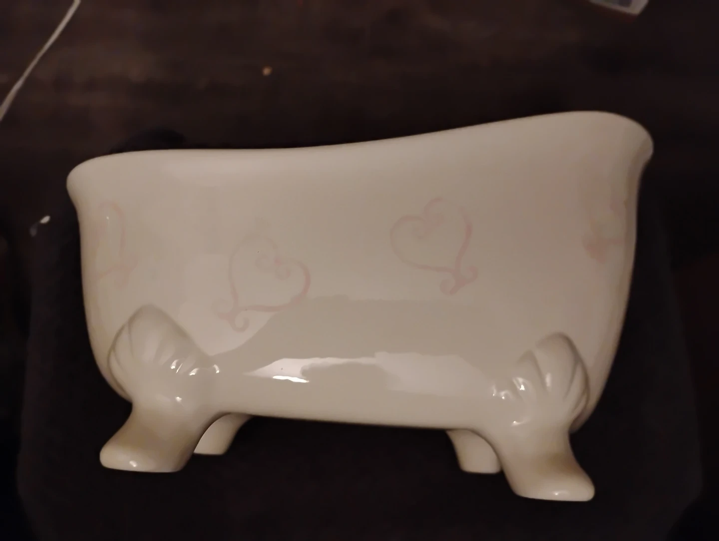 NEW! WHITE CERAMIC BATHTUB W/PINK DECAL HEARTS
