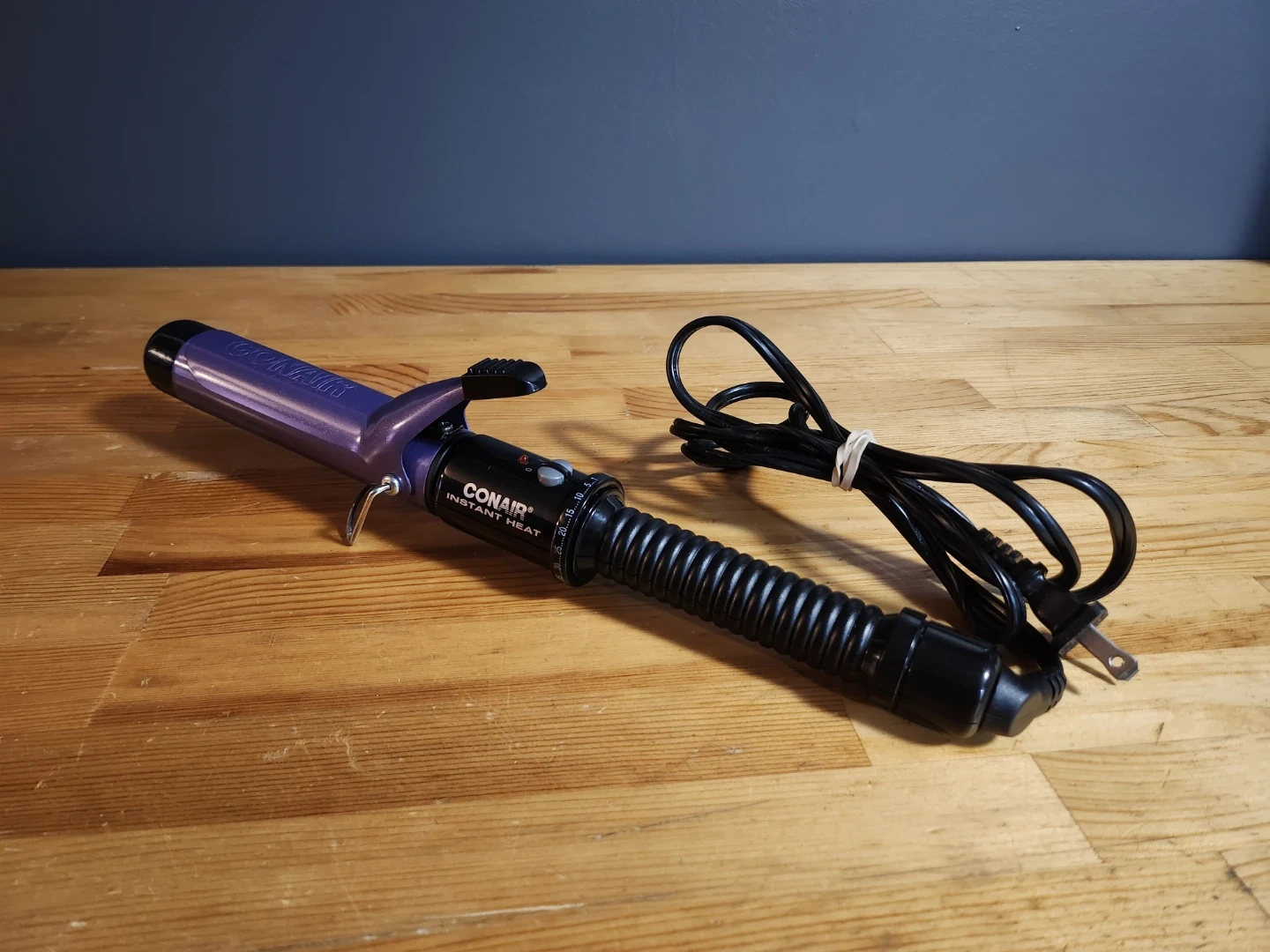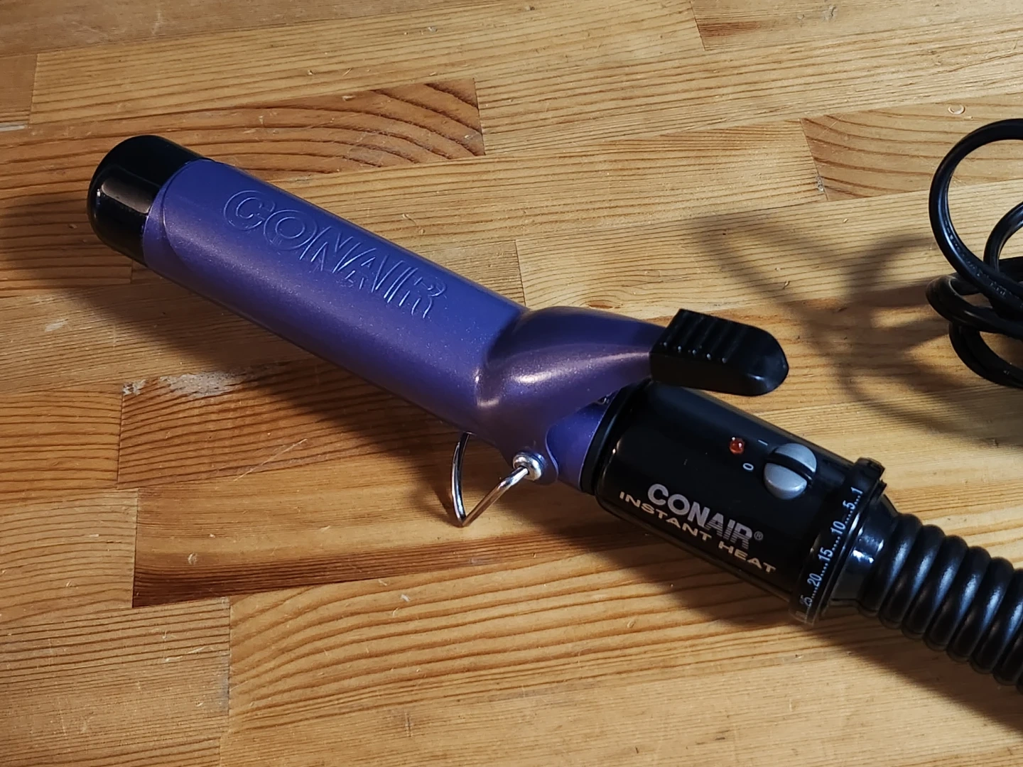 Conair Instant Heat curling iron with a barrel size of 1 1/4". these models are commonly available in purple and black color scheme.