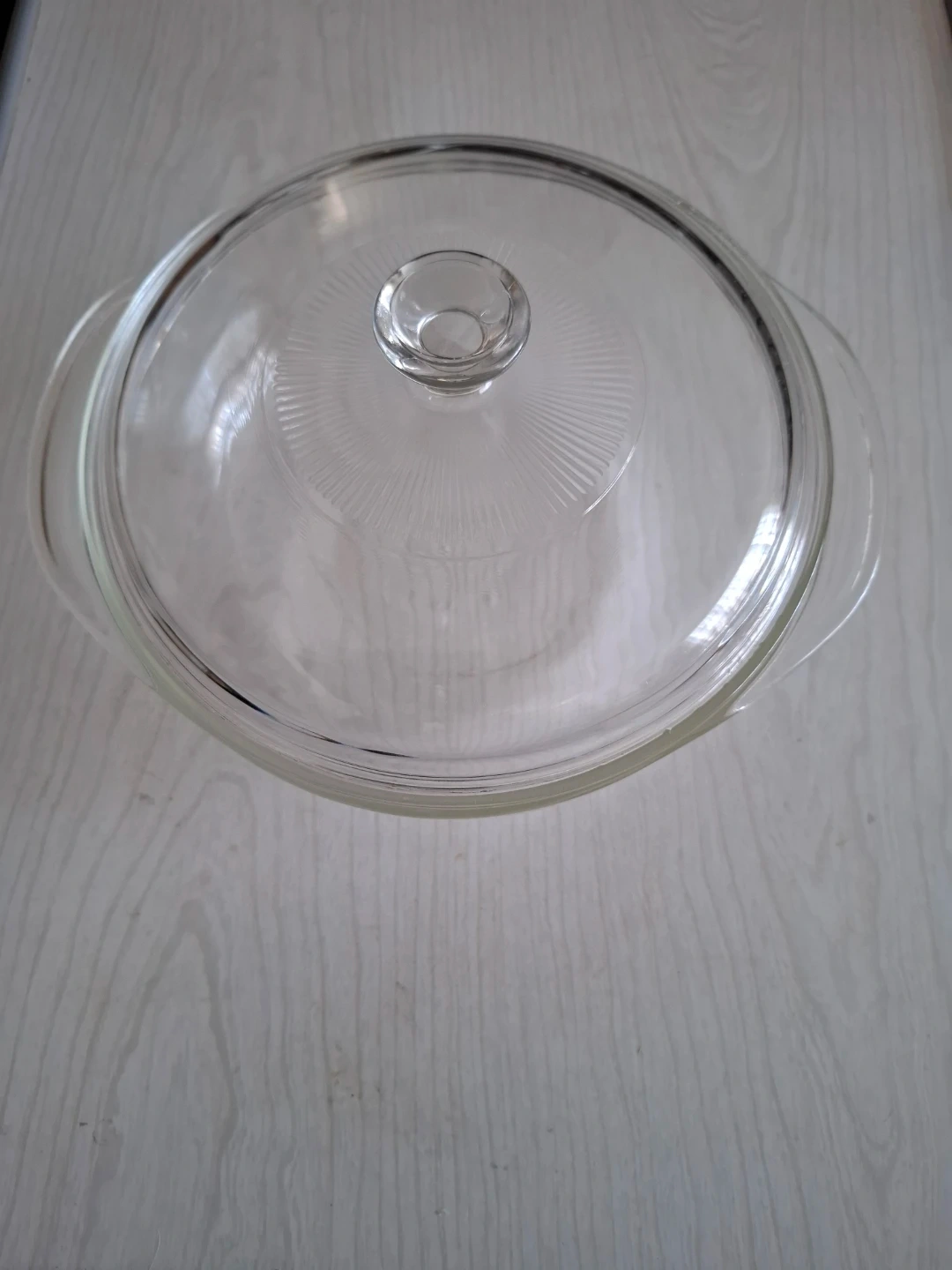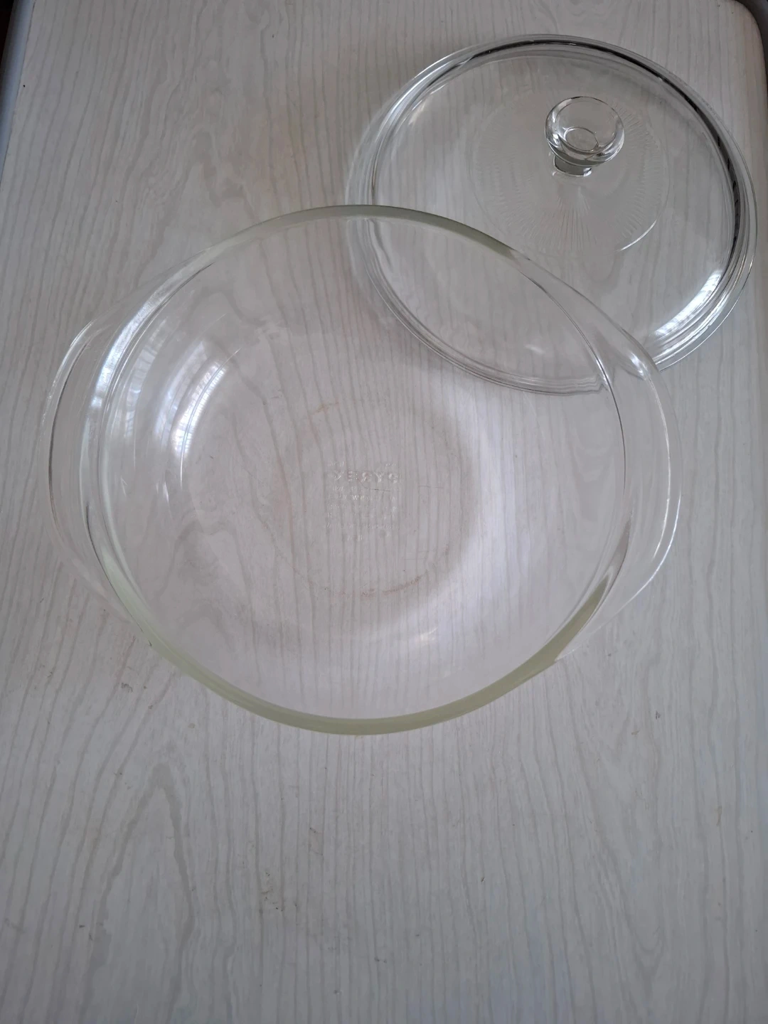 This is a clear glass casserole dish from Pyrex. It includes a matching glass lid. It's suitable for baking and serving. Oven safe glass.