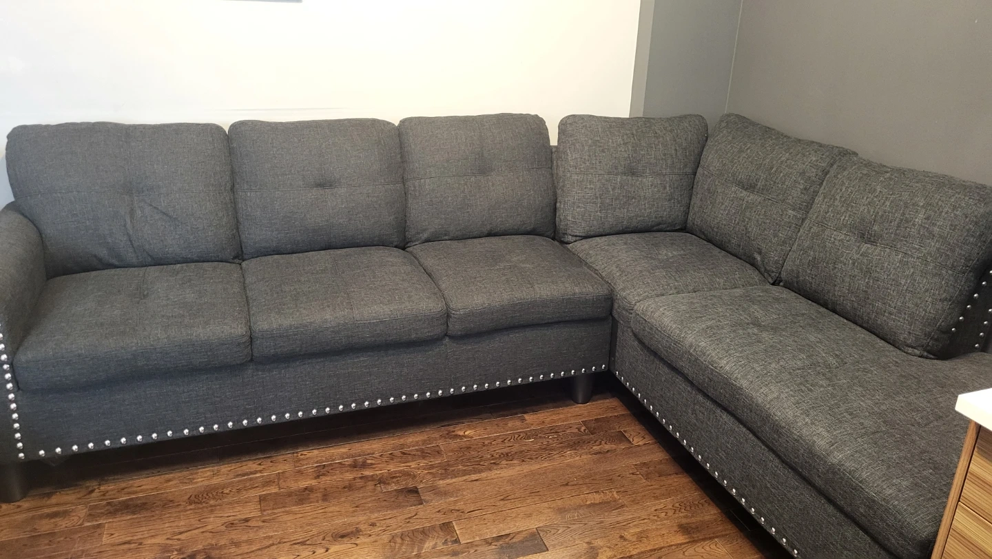Grey Sectional Sofa with Built-in Cupholders