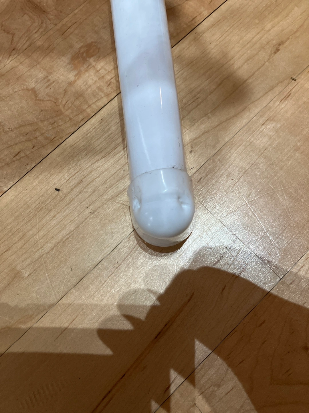 This Hampton Bay pedestal fan is white with distinctive orange fan blades. It's a great way to keep your space cool. The fan's height is adjustable. Works great, but selling for cheap as you can see there is some superficial damage to the base.
