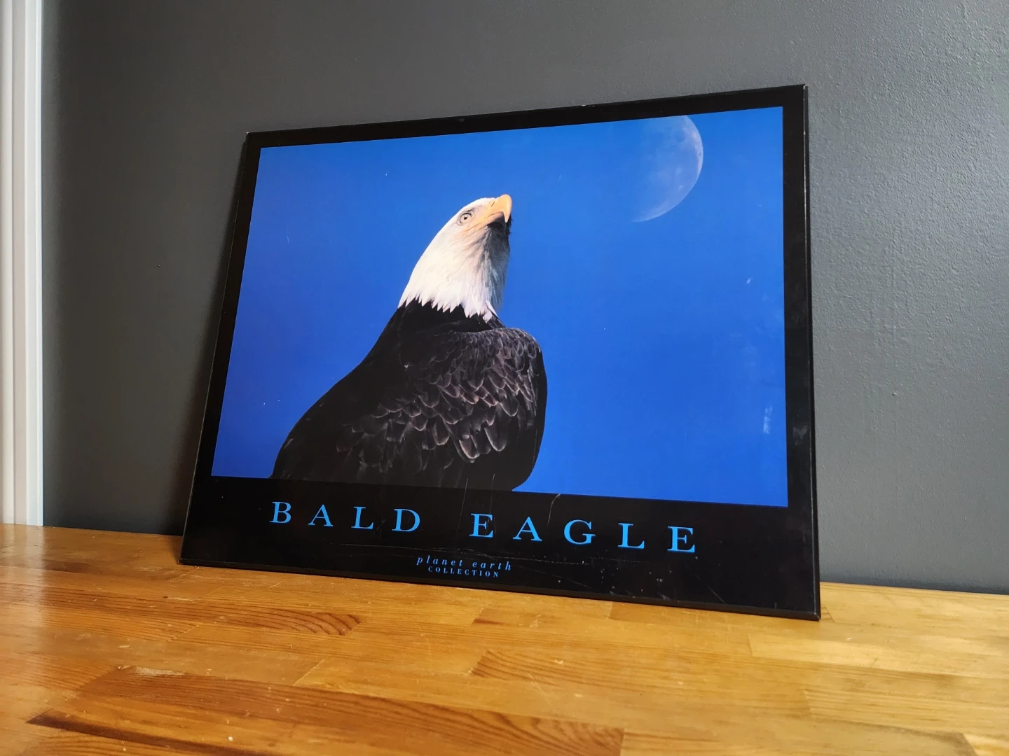 Planet Earth Collection "Bald Eagle" print. It features a striking image of a bald eagle against a bright blue sky with a moon. The print is mounted on a hard backing board, ready for display. It's a lovely piece for any nature enthusiast!