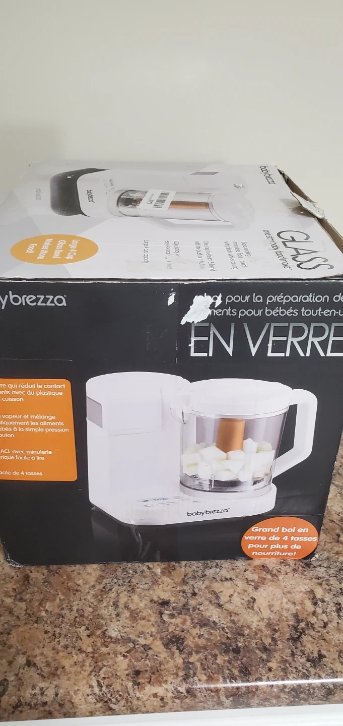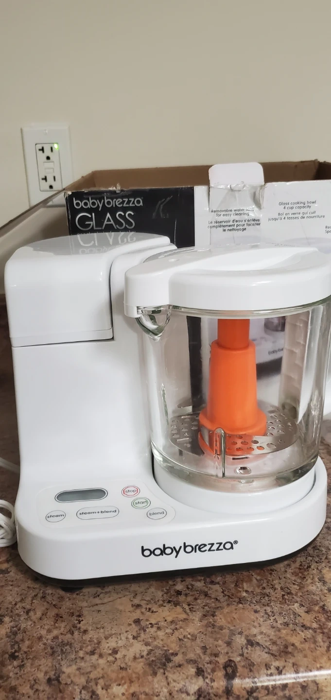 This Baby Brezza GLASS food maker steams and blends baby food in one step. It features a glass bowl and a large 4-cup capacity. This appliance is great for preparing homemade meals for your little one.