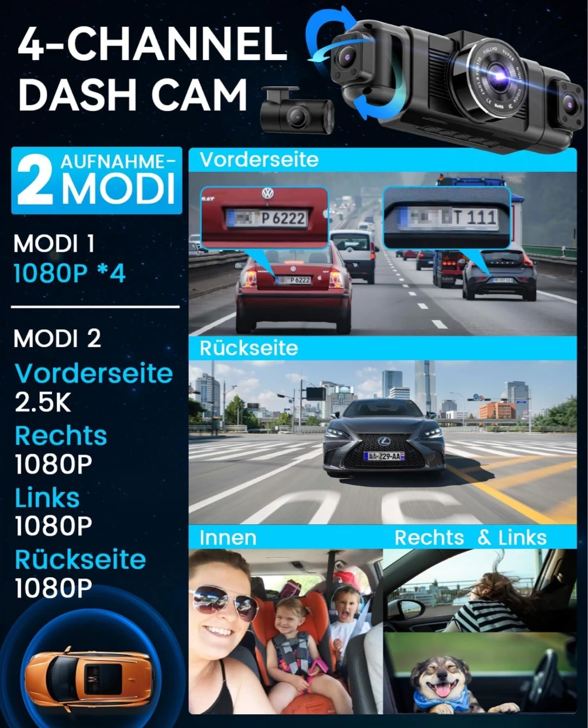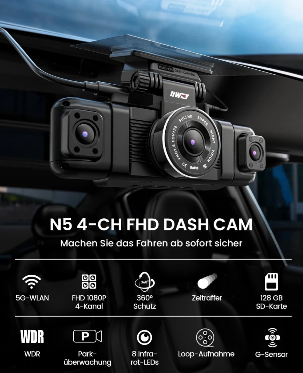 IIWEY N5 4 Channel FHD Dash Cam with 128GB SD Card