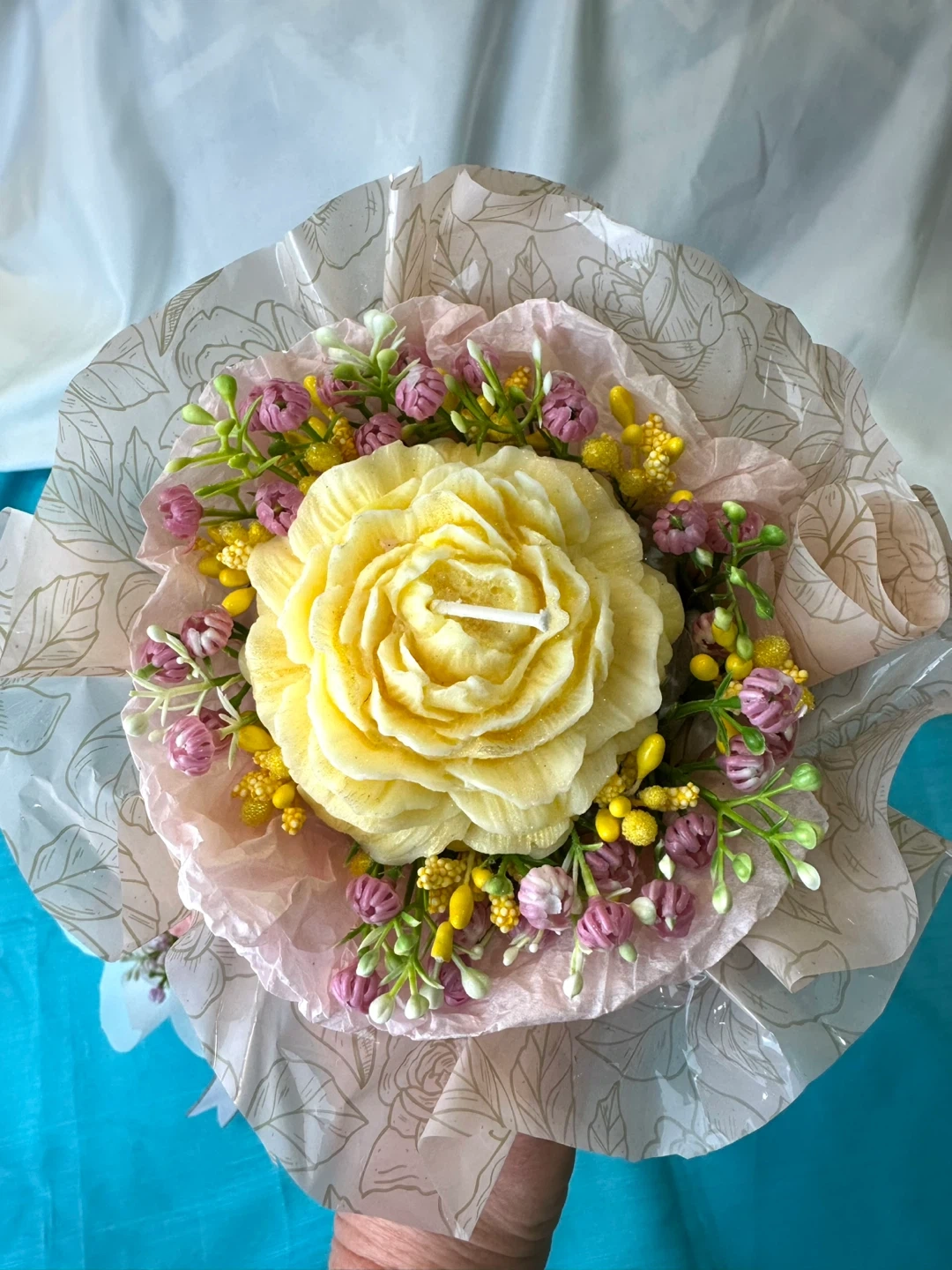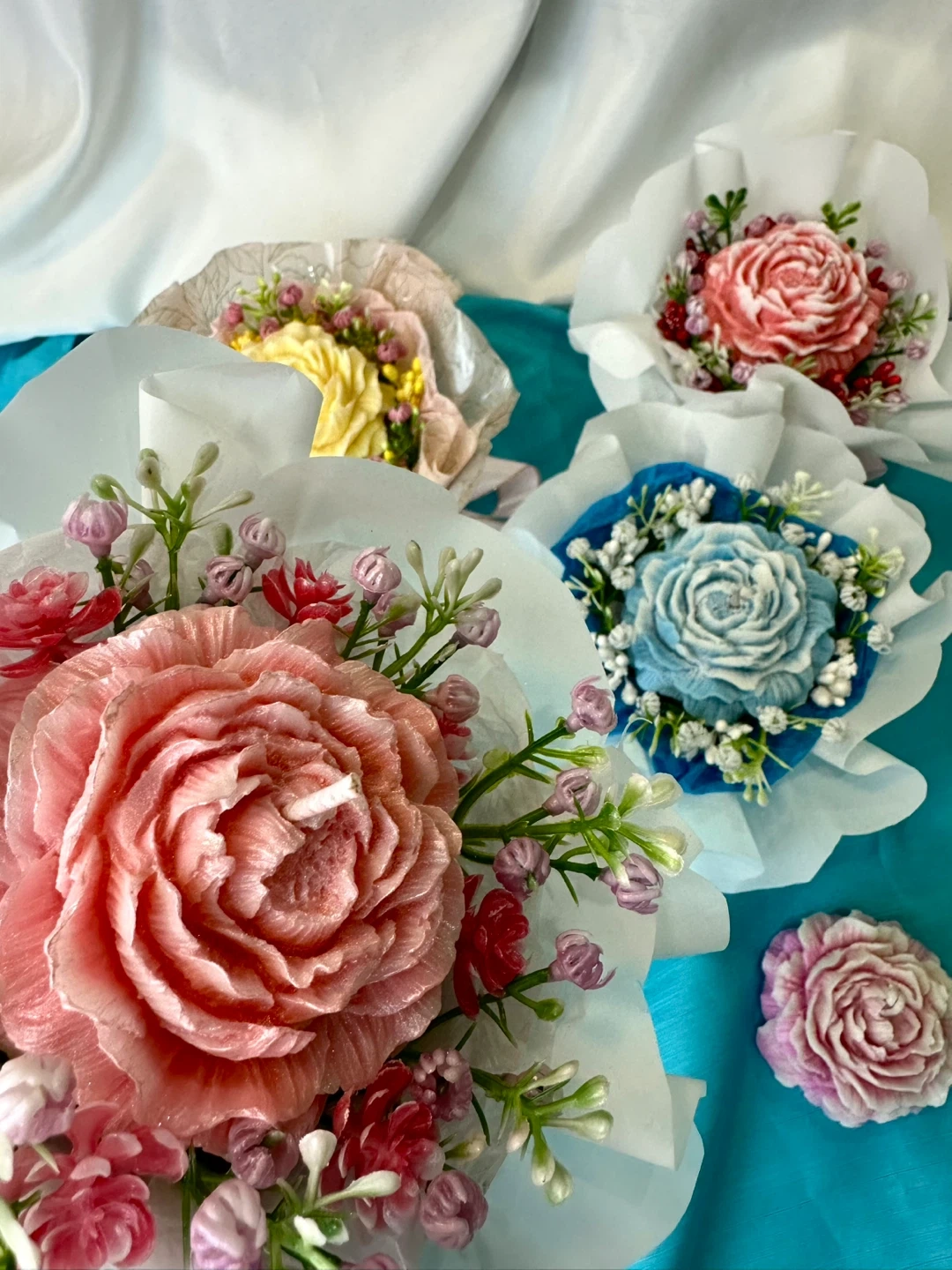 A charming mini-bouquet of decorative candles shaped like flowers. The perfect complimentary gift, pleasing to the eye and creating a cozy atmosphere.