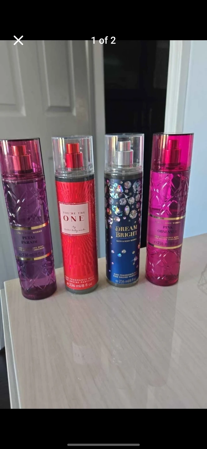 Selling a lot of four Bath & Body Works Fine Fragrance Mists. Includes 'Petal Wish', 'You're the One', 'Dream Bright', and 'Pink Obsession'. Each bottle is 236 ml / 8 fl oz.