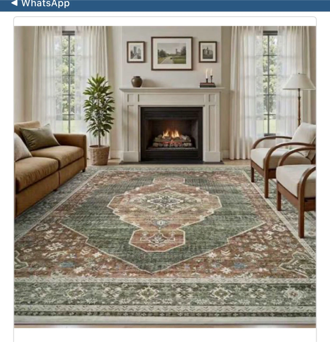 Persian Style Area Rug - Green and Rust