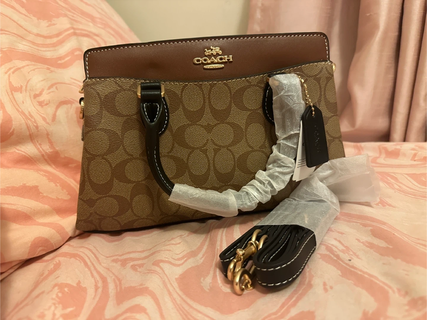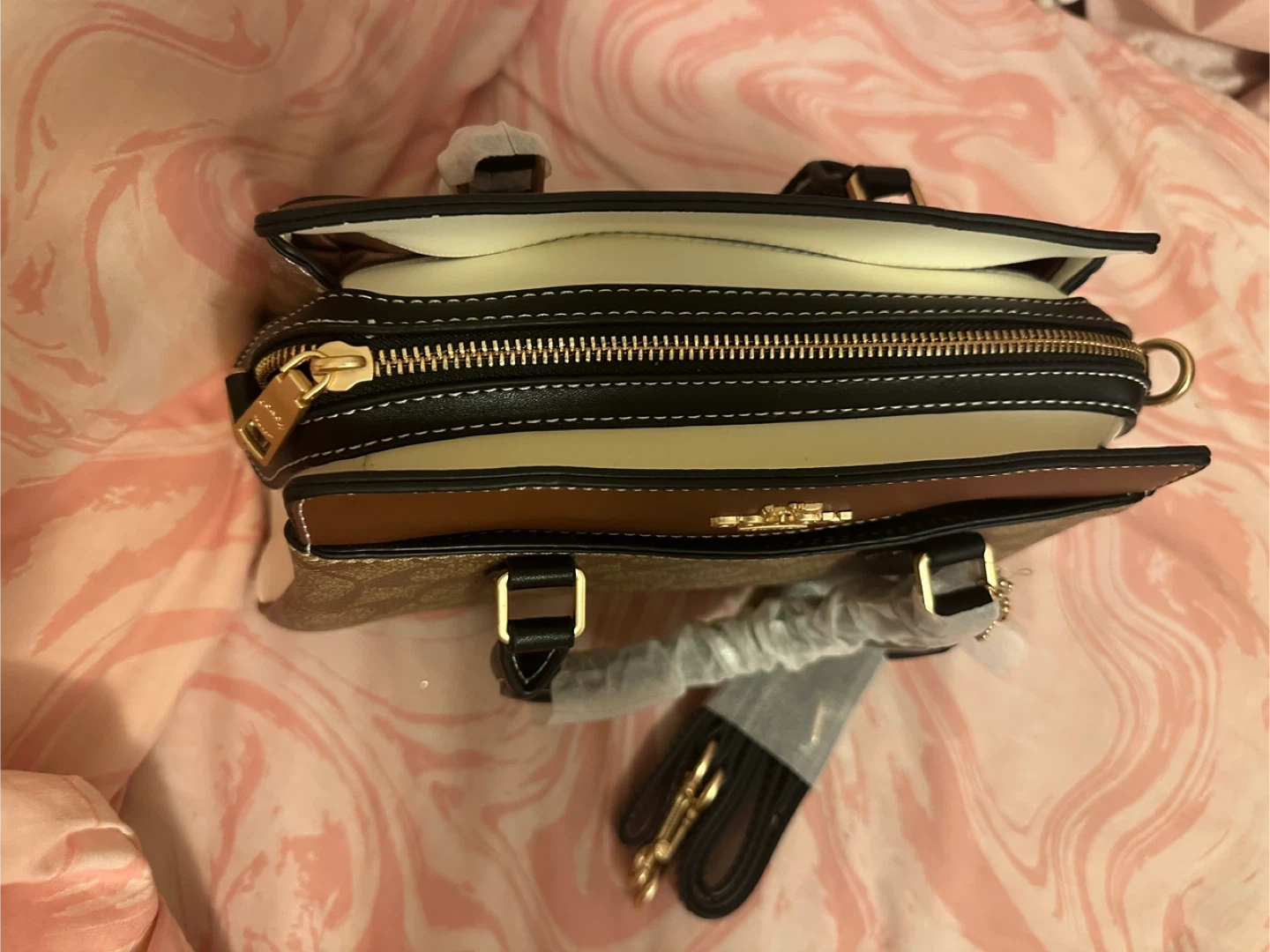 Beautiful Coach satchel purse in their signature "C" print. It comes with a detachable shoulder strap and gold-tone hardware. This is a great everyday bag for essentials!