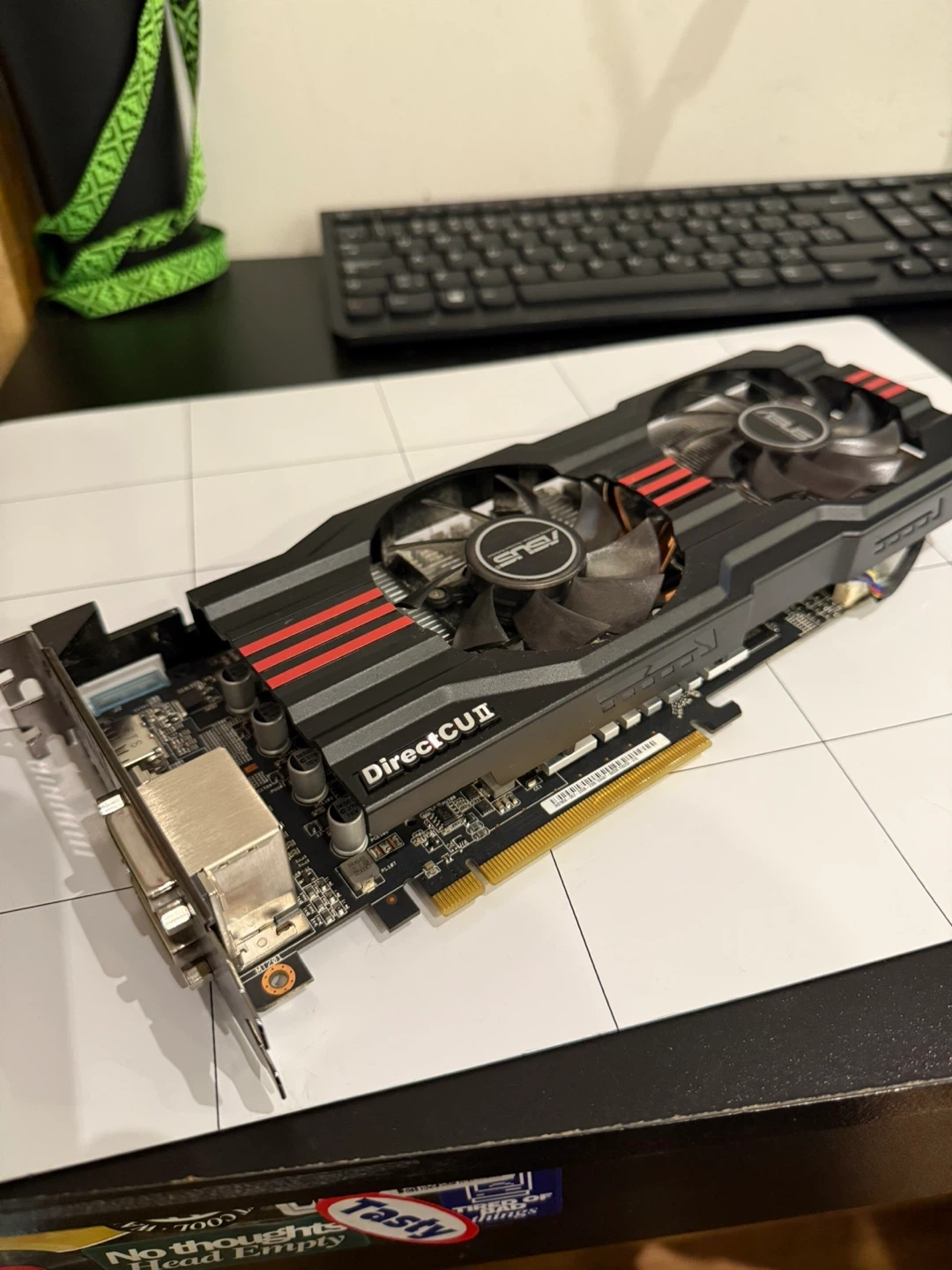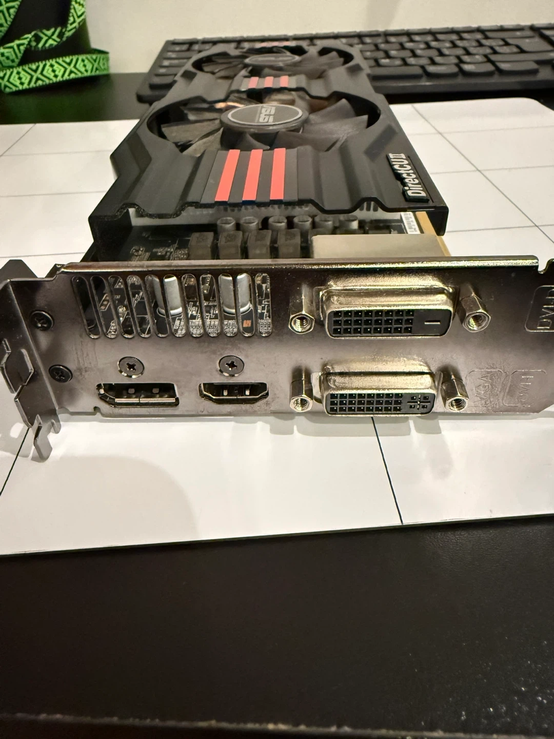 This ASUS DirectCU II graphics card is ready for your PC build. It features dual fans for effective cooling. Outputs include HDMI and DisplayPort.