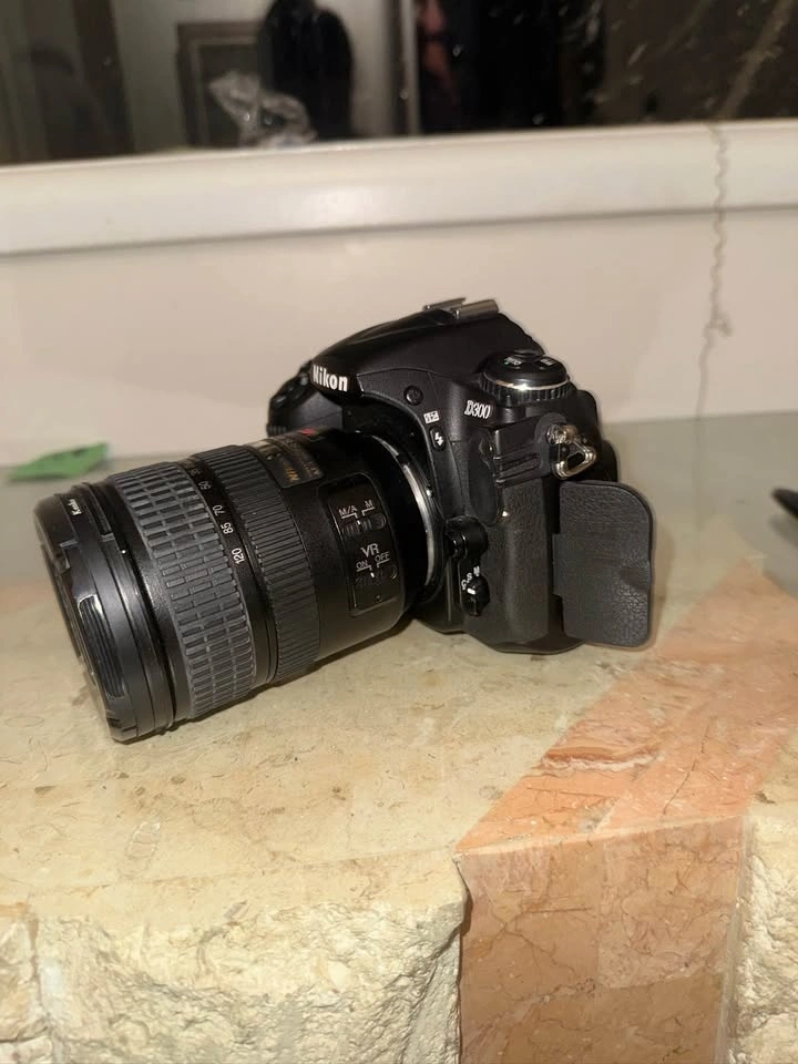 Nikon D300 DSLR camera with Nikon 18-200mm VR zoom lens. Camera and lens are in good physical condition and were working properly. Battery no longer holds charge and will need replacement. Charger is included. Great setup for photography hobbyists, as a backup camera, or for someone who already owns Nikon EN-EL3e batteries, or for repair/resale. Includes: Nikon D300 camera body, Nikon 18-200mm VR lens, lens cap, Nikon battery charger, and what you see in photos. Battery replacements are inexpensive and easy to find online. Pickup preferred. Cash only or e-transfer.