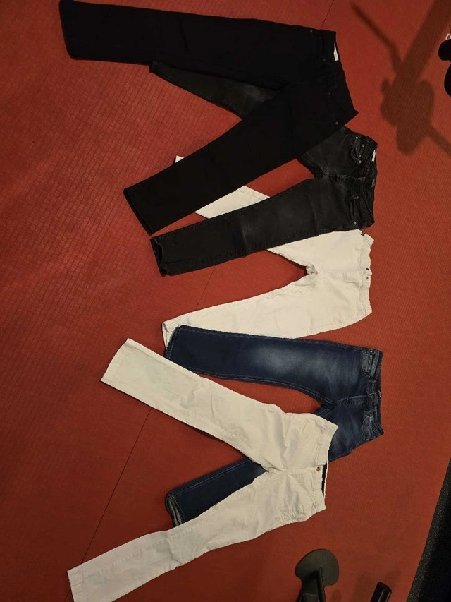 All in excellent condition. Some are brand new, never worn. Includes: Black Zara size 29, Faded black Jack Jones size 31, White Zanerobe size 28, Dark blue Jack Jones size 30, White Slacker size 28.