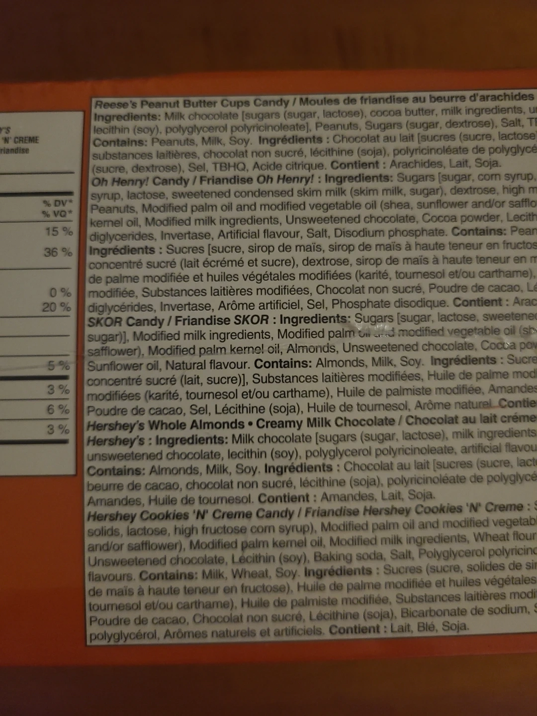 This is a box of 50 assorted full size Hershey's chocolate bars. Includes Reese's Peanut Butter Cups, Oh Henry!, Skor, and Hershey's Cookies 'n' Cream. Manufactured on 2026 March 01.