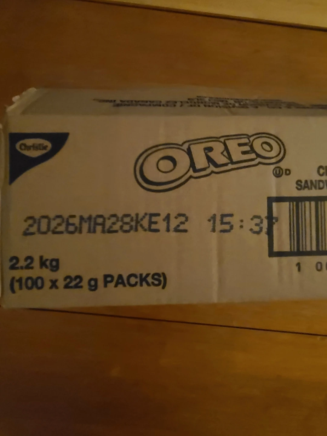 Bulk box of The Original Oreo cookies. Contains 100 individually packaged 22 g packs.. This is a large quantity of cookies, perfect for parties or stocking up.
