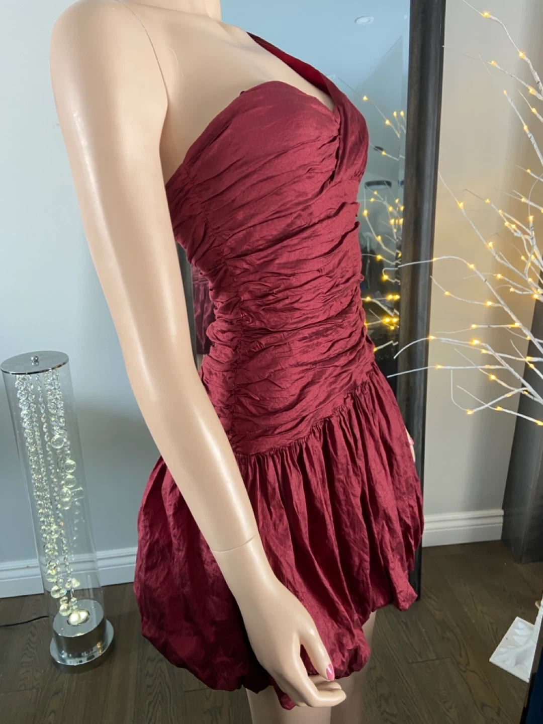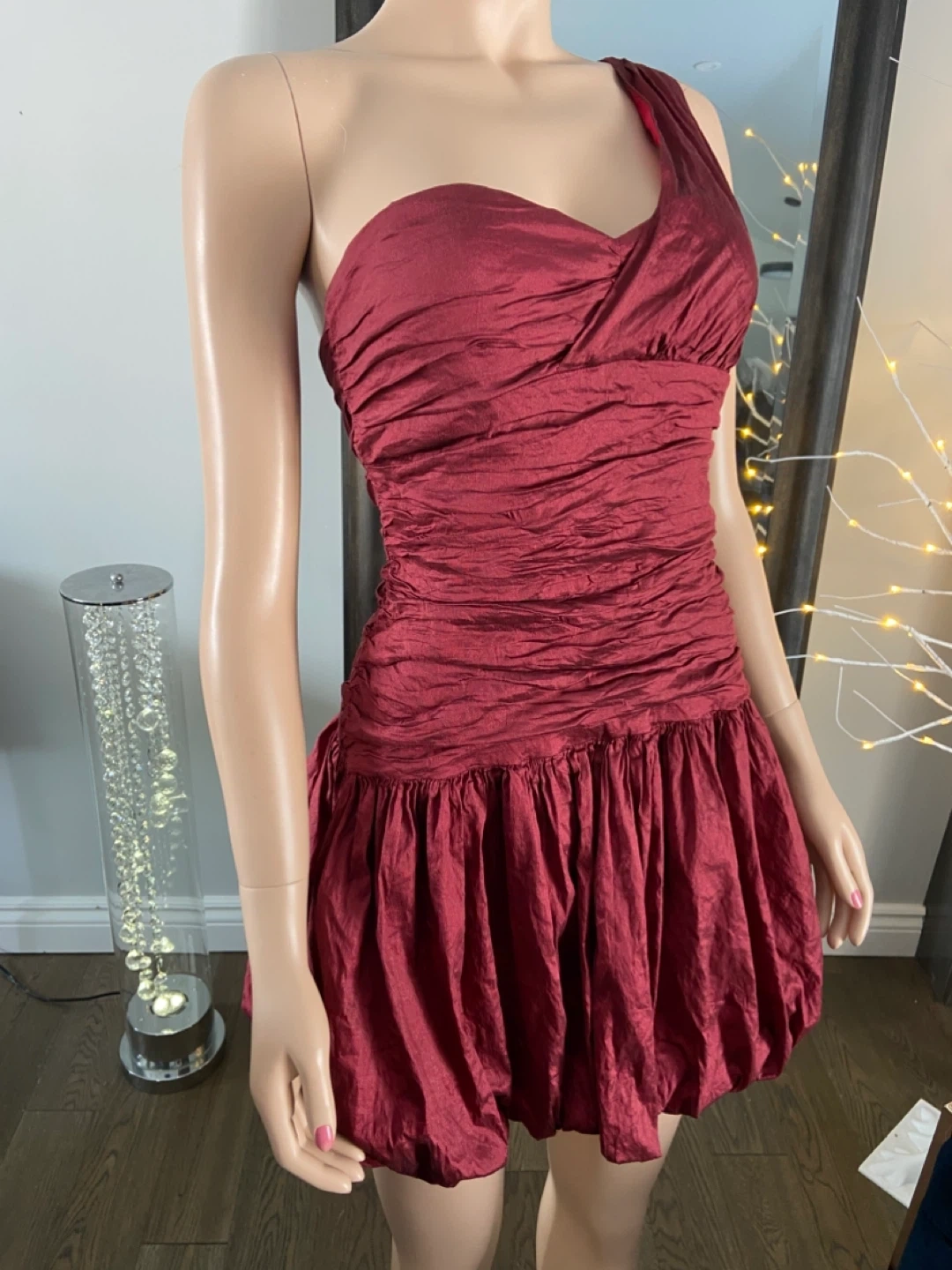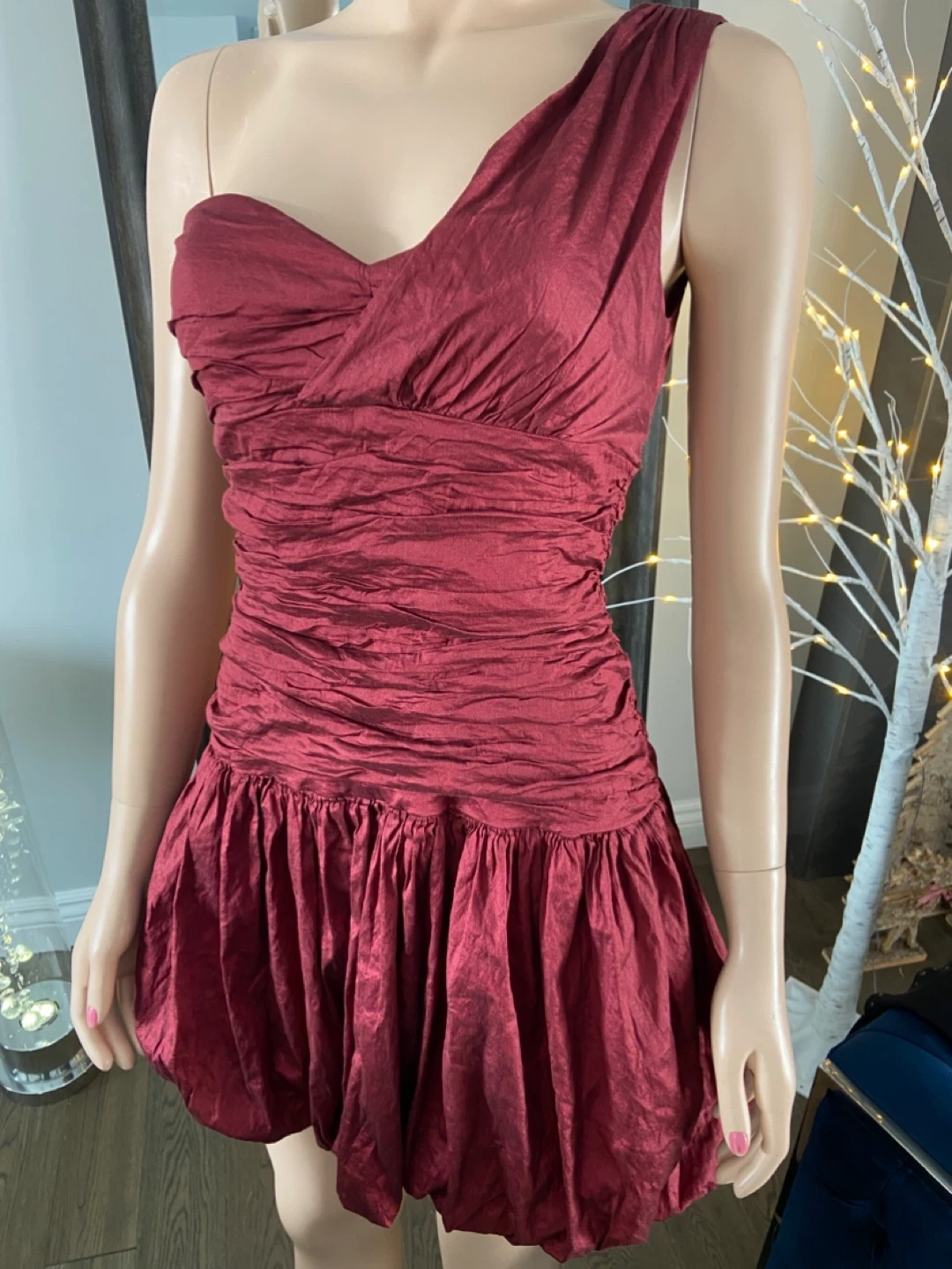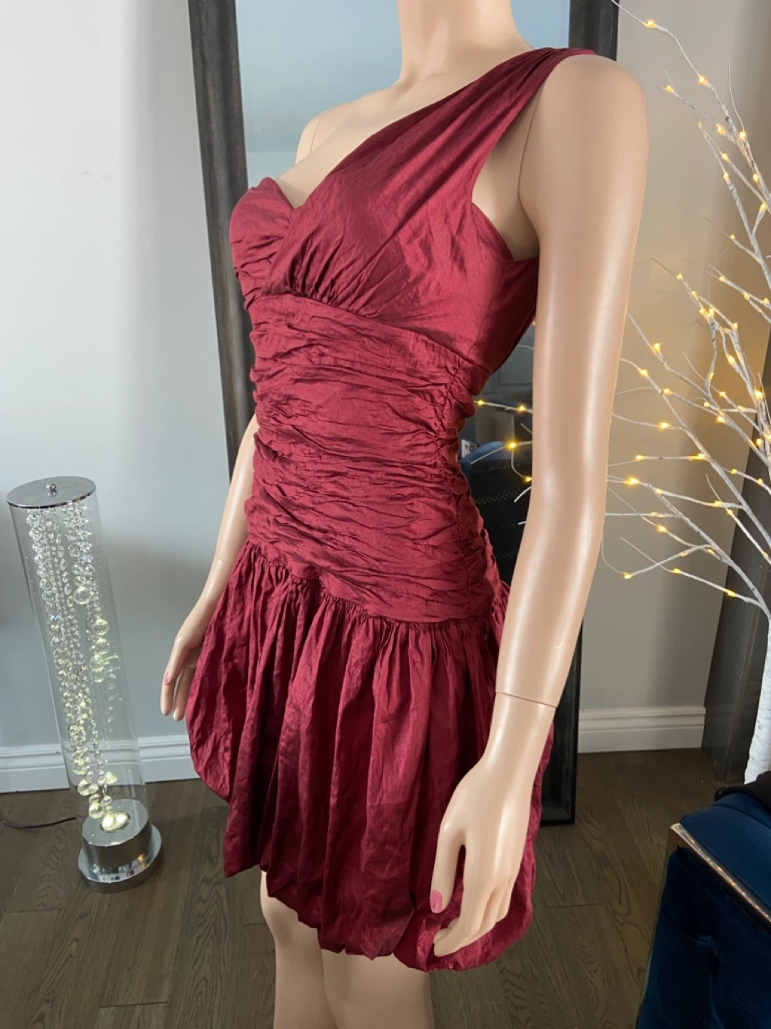 NWOT Red One-Shoulder Ruched Bubble Hem Dress 6