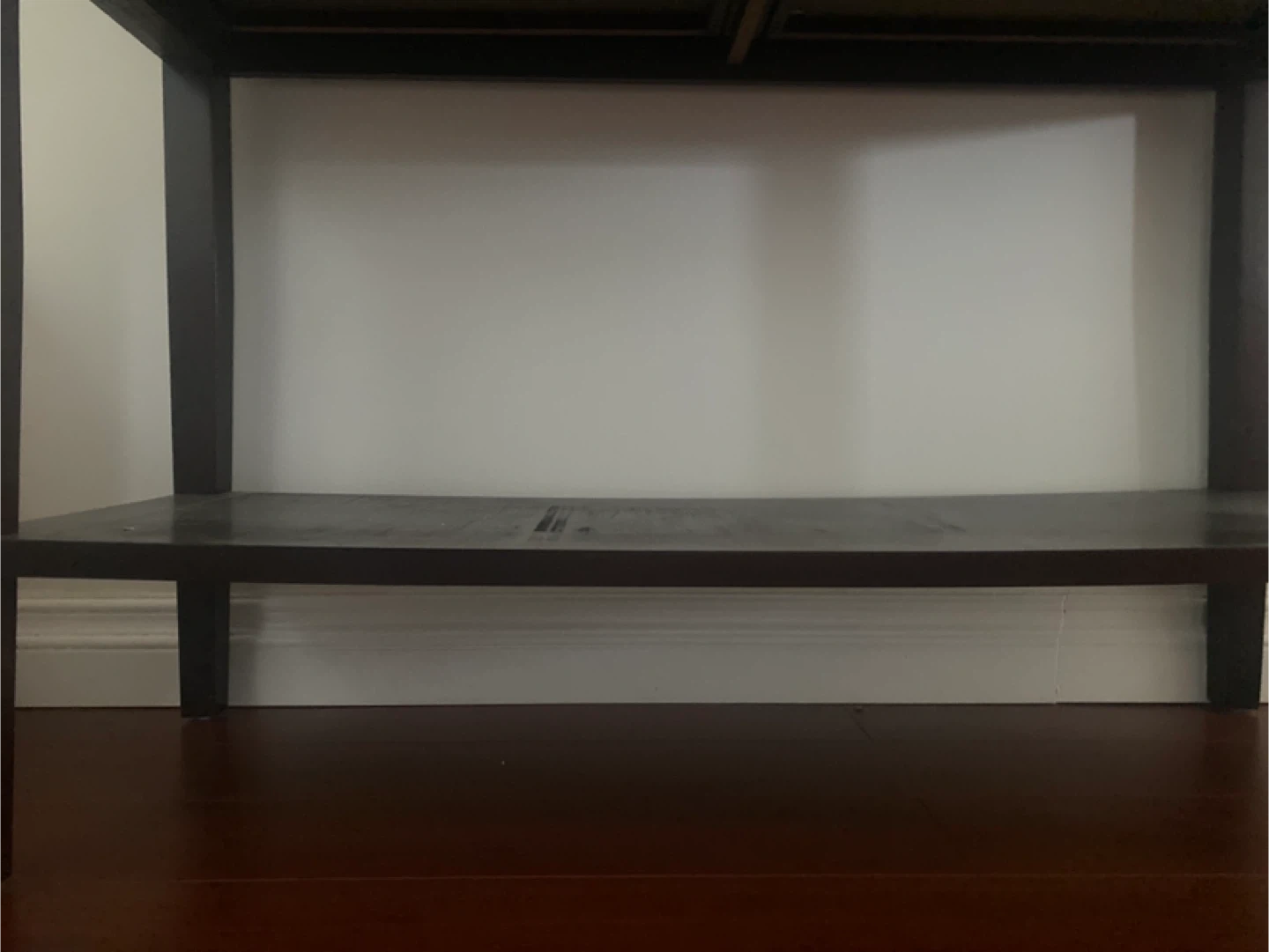 Note: the bottom shelf is slightly bowed in the middle (as seen in the picture)