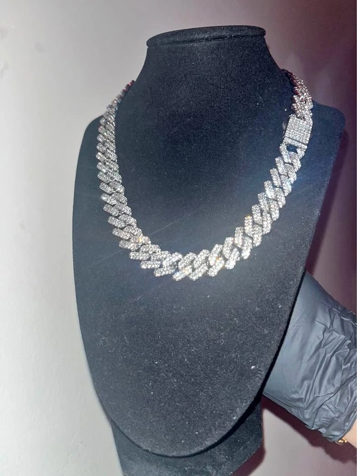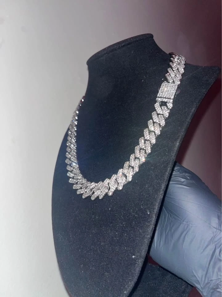 12MM WIDE Γ 20 INCHES LONG ICED CUBAN CHAIN WITH WHITE GOLD PLATED FINISH, HIGH SHINE SILVER TONE. FULLY SET WITH VVS CZ SIMULATED DIAMOND STONES FOR A CLEAN, ICY, LUXURY LOOK π―