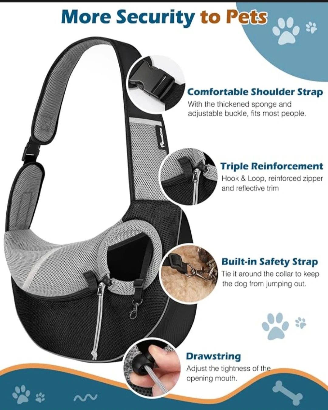 Small-Pawaboo Dog Sling Carrier, Dog Papoose with Zipper Touch Pocket, Hand Free Breathable Mesh Puppy Carrier, Crossbody Satchel Dog Purse with Adjustable Strap for Outdoor Travel, Black, Small