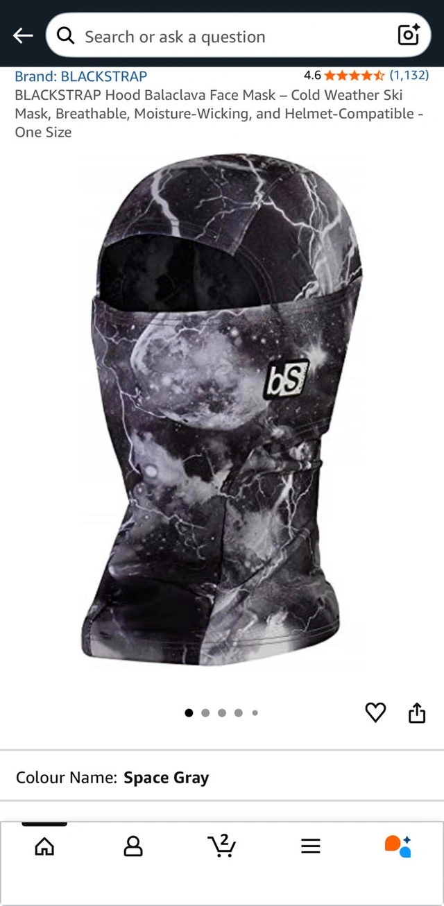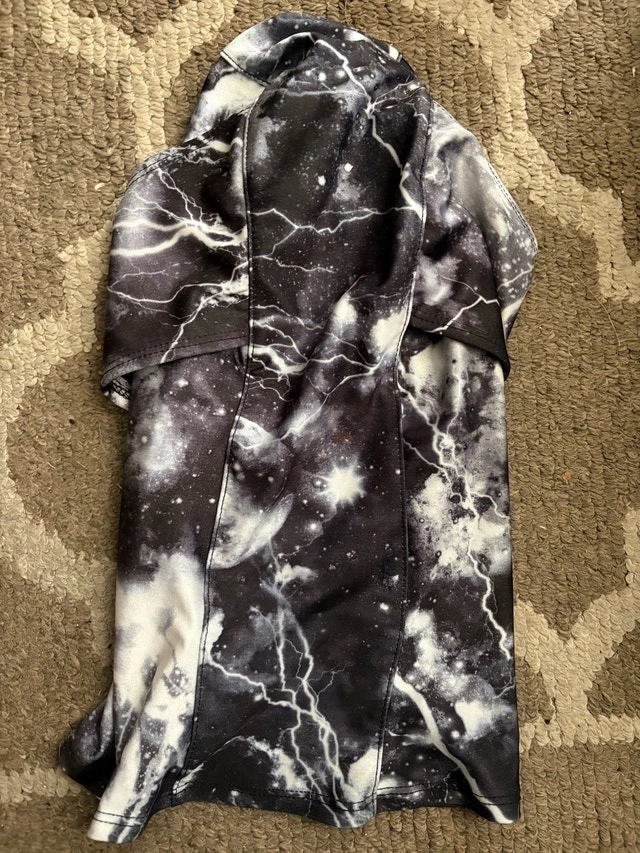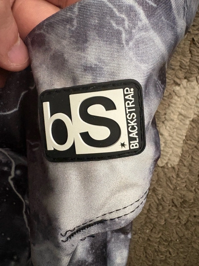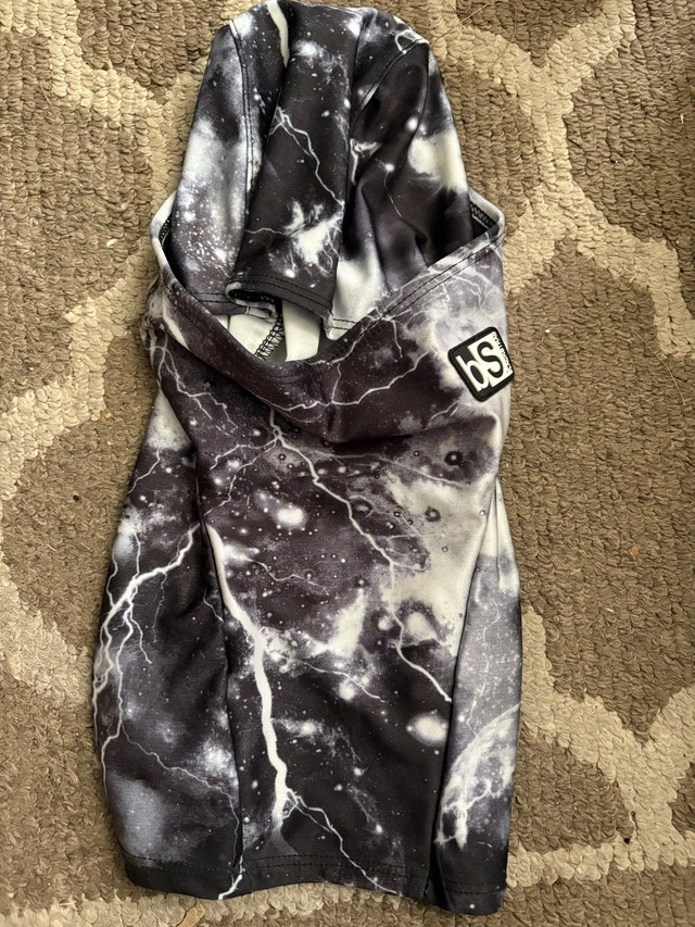 Stay warm and stylish on the slopes with this Blackstrap balaclava! This balaclava is in gently used but excellent like new condition and features a cool space gray design with lightning bolts. It's perfect for skiing, snowboarding, or any other outdoor activity in cold weather. Moisture-wicking fabric, breathable design, helmet-compatible. Used twice last year. It’s been washed and is ready to use. Purchased for $70+tax at Blue Mountain.