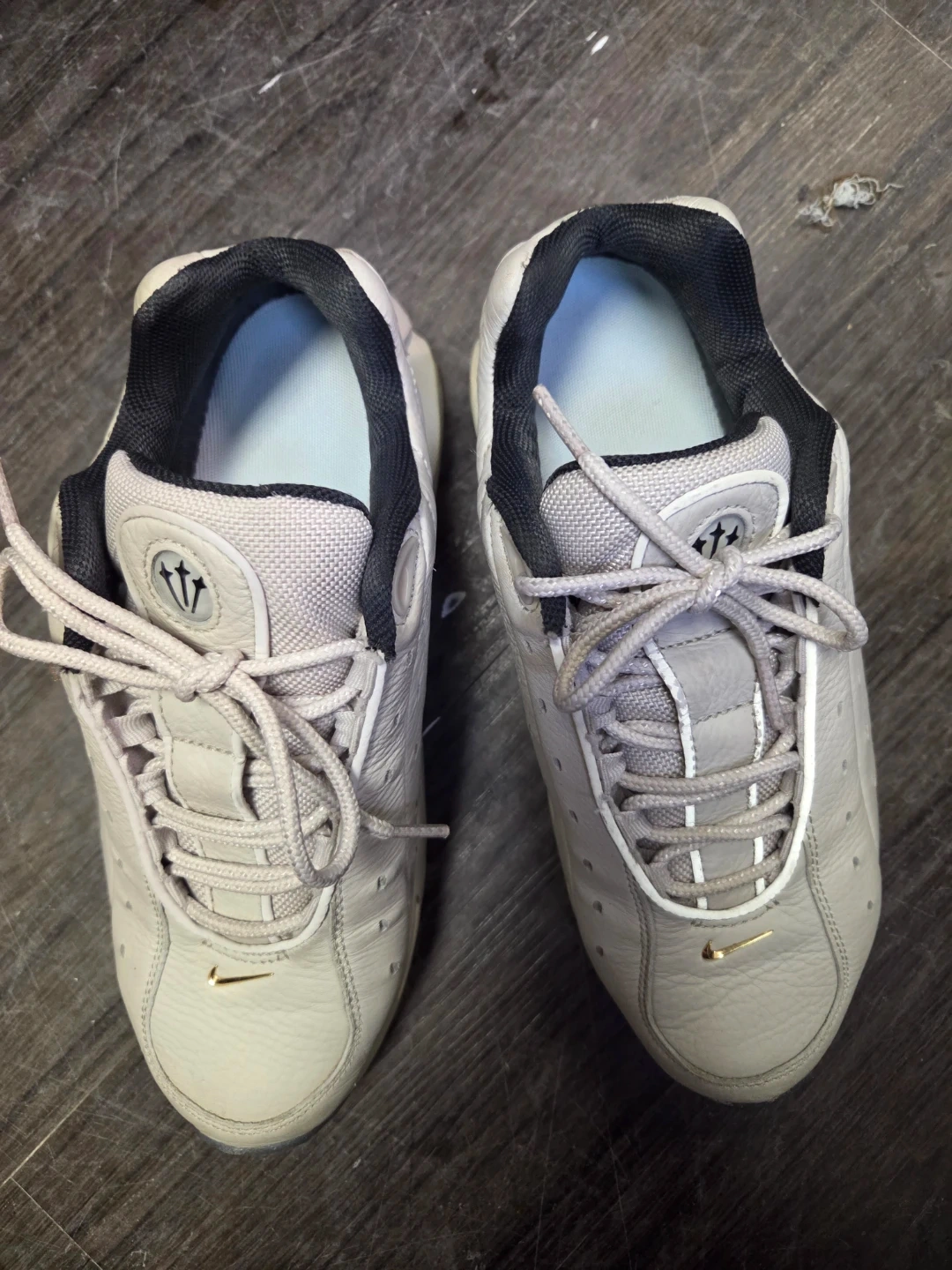 These Nike Air Max Tailwind IV shoes are a size US women's 7 They're a cream colour with gold accents. Features Nike Air cushioning in the sole for comfort. Great for everyday wear!