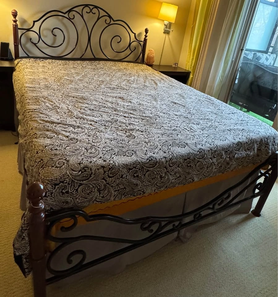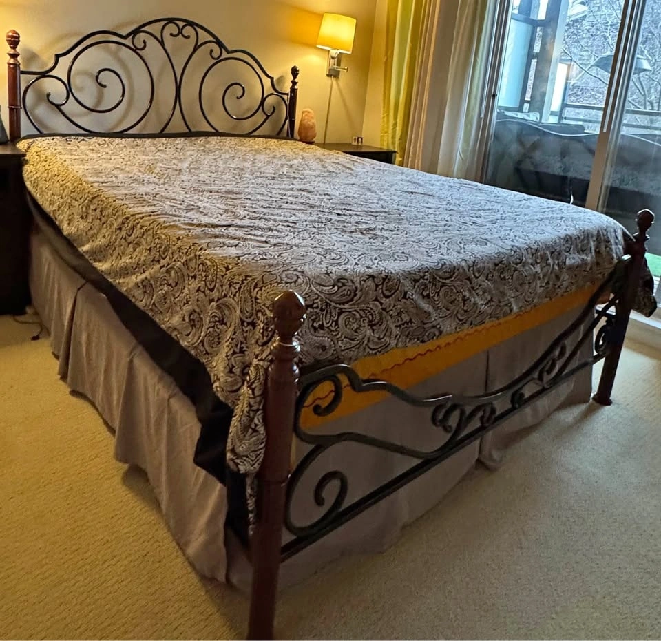 Moving sale. Beautiful wrought iron bed frame that elevates your bedroom instantly. Easy to assemble and disassemble, not very heavy making it easy for transport. Pick up Port Royal neighborhood in Queensborough New Westminster.