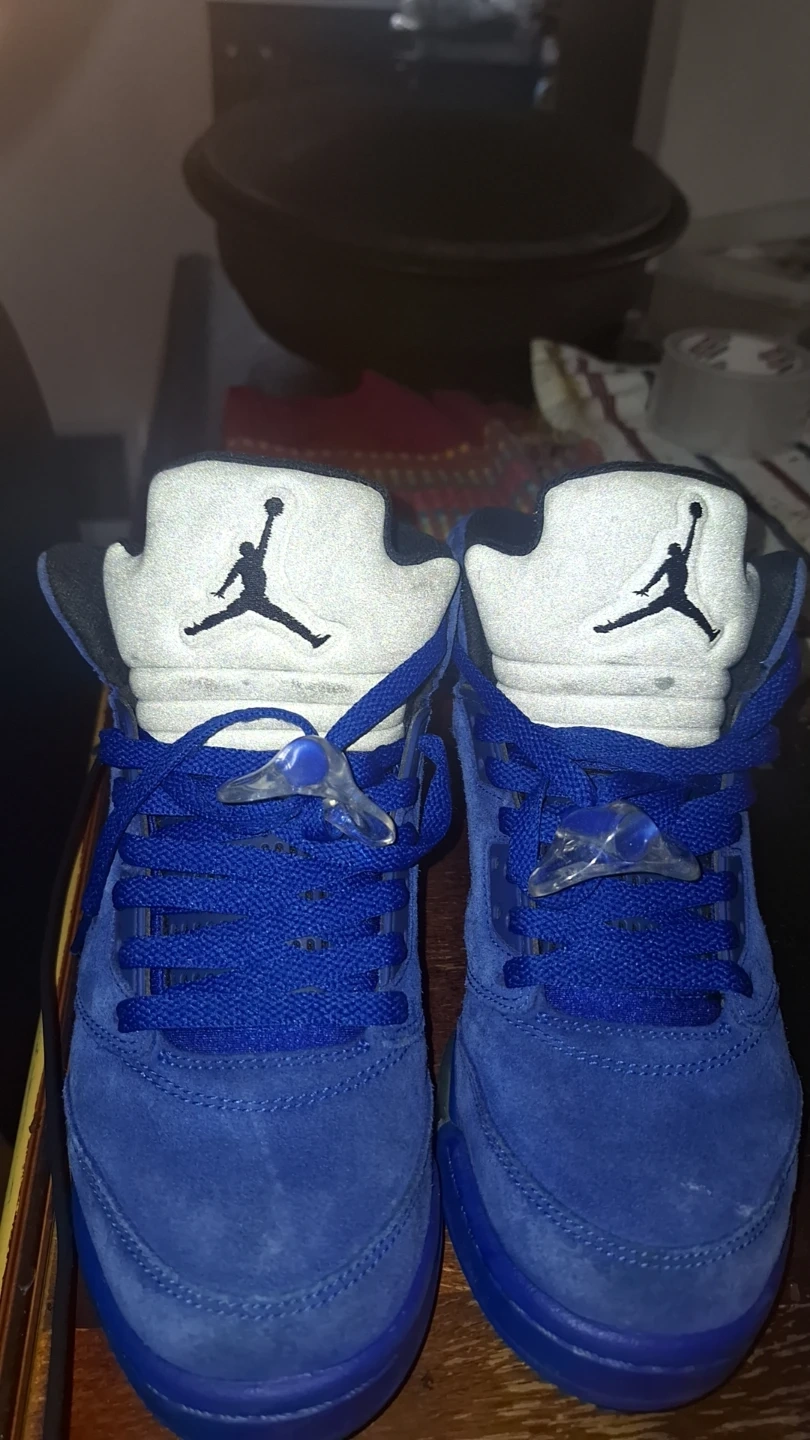 These are Air Jordan 5 blue suede shoes come with a nice royal blue it is used im selling it for a good price