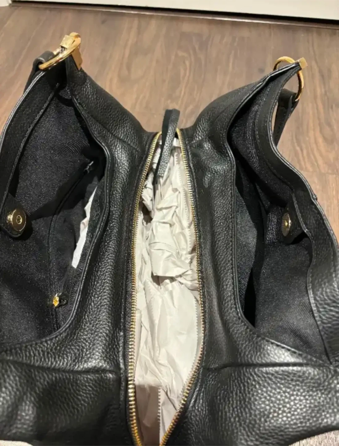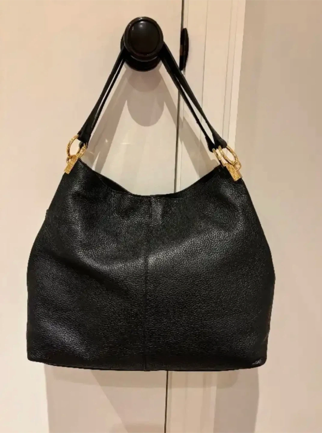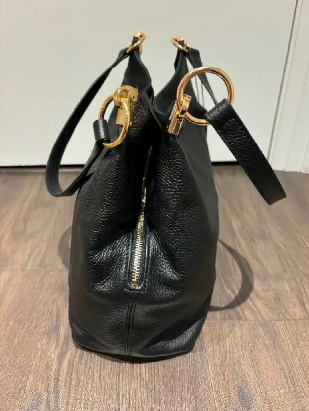 Vince Camuto designer black leather purse, tote bag new with tags. Dimensions are as follows: Base of purse 12 inches long, 5 inches wide and 10 inches high not including the shoulder straps. Retails for $248 US tags attached. Pick up in Etobicoke by Kipling and Bloor.