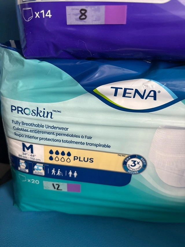 Depend Large (17 pack): $8 TENA Overnight Medium (14 pack): $8 TENA Plus Medium (20 pack): $12. Bundle deal if you buy more than one. All are brand new and unopened. Comfortable, breathable, and very absorbent. Pull-on style like regular underwear. Great for day or overnight use. Pickup only. Cash or e-transfer accepted.