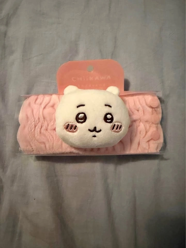 This is a completely new, official Chikawa merchandise headband, likely from Sukoshi Mart. It helps protect your face from water when washing your face. The item is available if the listing is still up. Serious inquiries only.