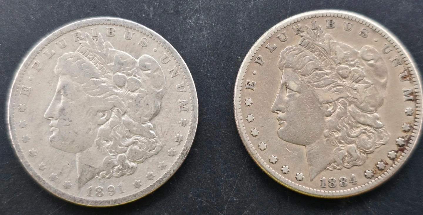 (2) Morgan Silver Dollars - 1891-O & 1884-S (90% Silver)
