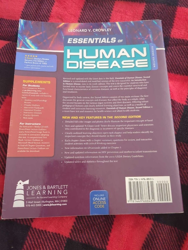 Explore the complexities of disease with the 'Essentials of Human Disease, Second Edition' textbook by Leonard Crowley! This comprehensive resource offers valuable insights into the fundamental concepts of human pathology and disease processes. This is a used copy in good condition. Cash accepted.