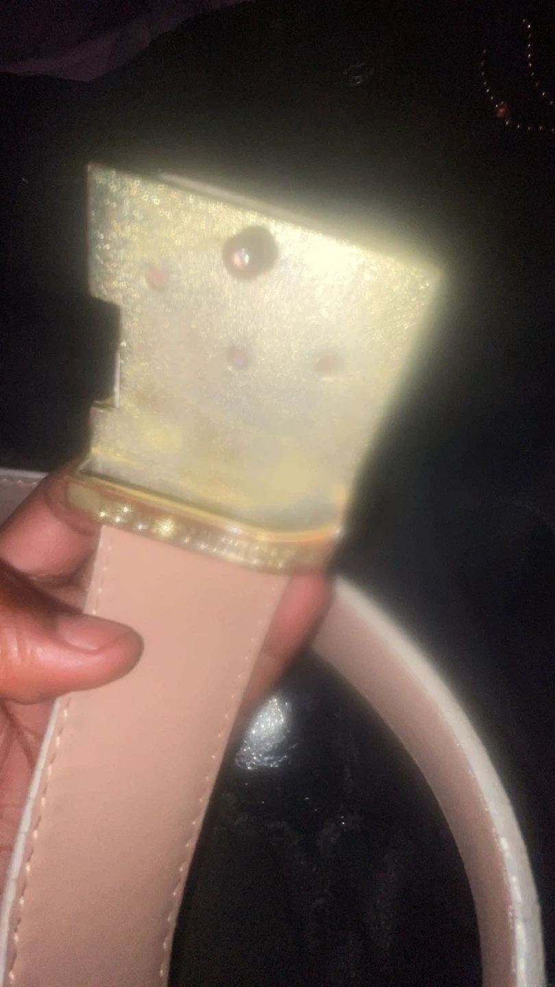 A classic Louis Vuitton belt with a gold-tone buckle. This accessory adds a touch of luxury to any outfit. Perfect for completing your look!