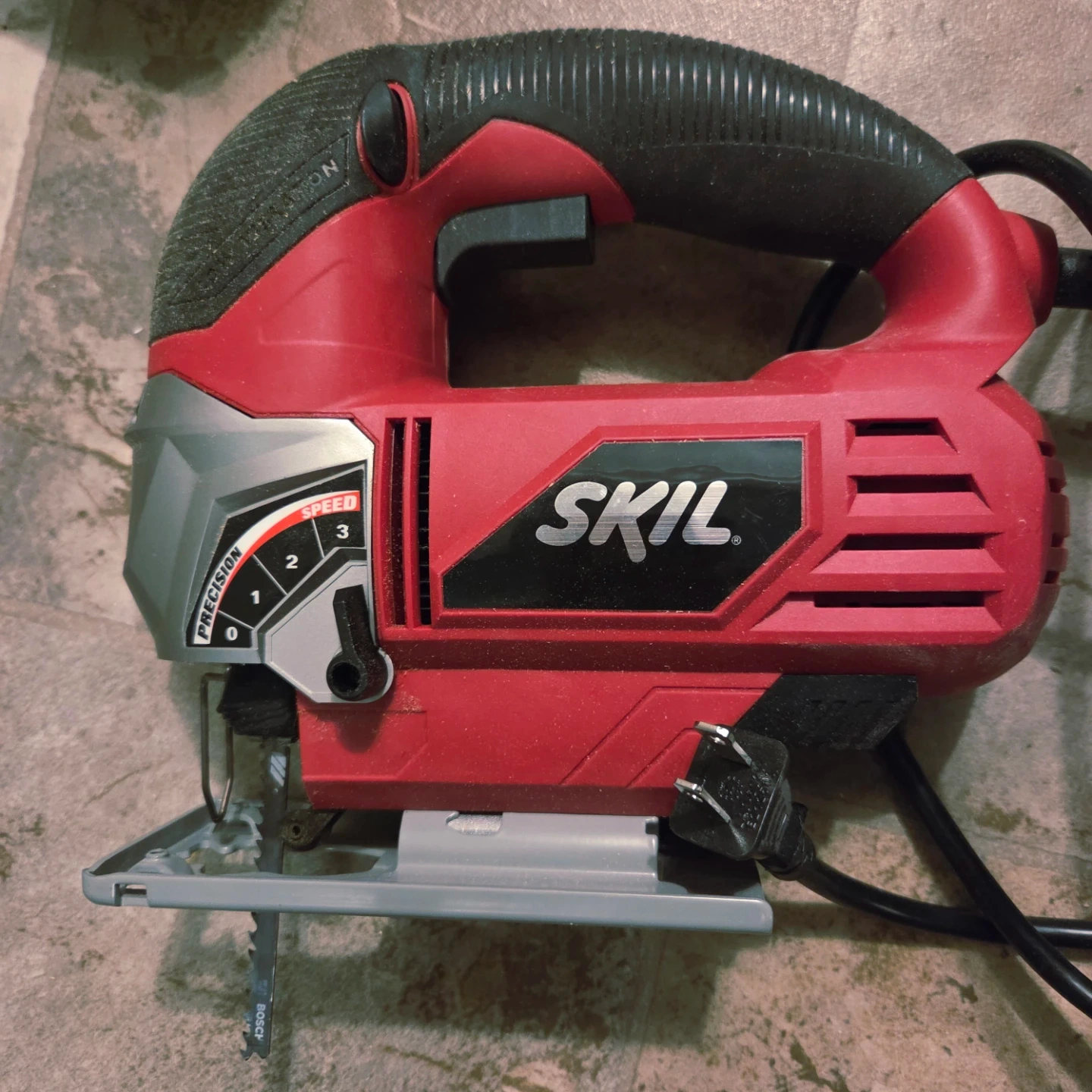 This SKIL jigsaw is in good working condition and includes its original carrying case. It features variable speed control for precision cutting. It's useful for various DIY projects and woodworking tasks.