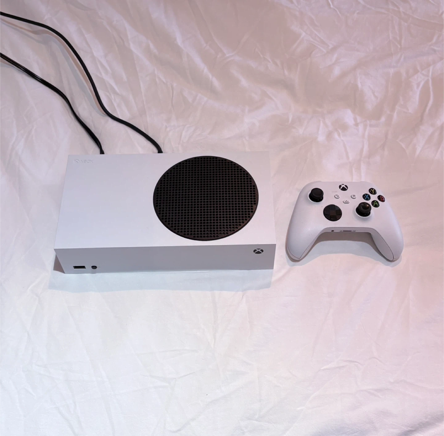 This is a white Microsoft Xbox Series S console that comes with its white controller. Is in great condition and Includes power cable.