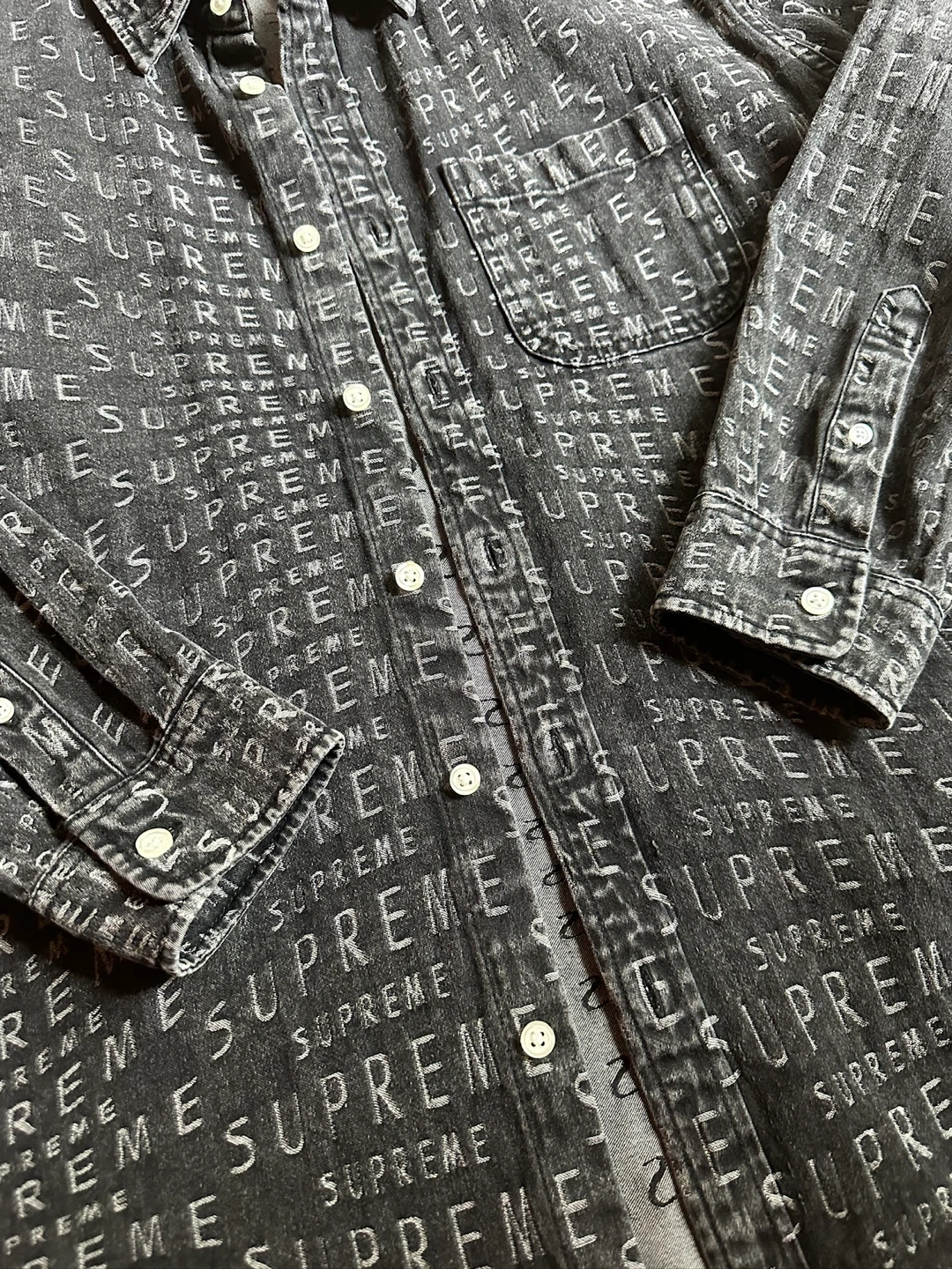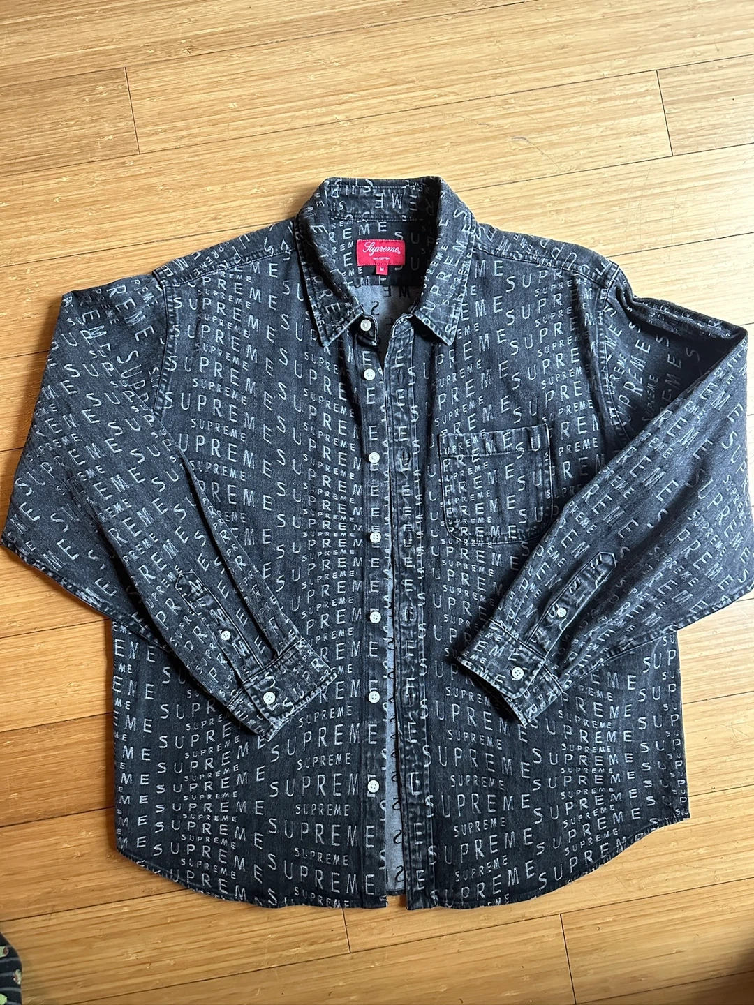 SUPREME SS21 WARP LOGO BUTTON DOWN DENIM SHIRT MEN SIZE MEDIUM