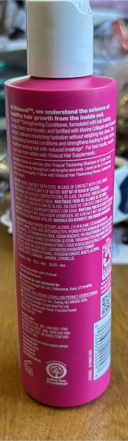 Viviscal Strengthening Conditioner is formulated with hair building Biotin and Keratin. It strengthens and reduces breakage for fuller, healthier-looking hair. 250ml bottle.