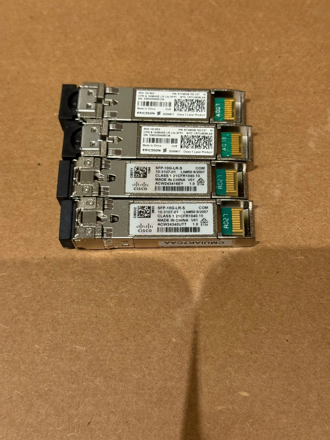 2 Cisco &2 Ericsson SFP-10G-LR-S transceiver modules are available. These modules are designed for 10-gigabit Ethernet connections. They are Class 1 Laser Products.