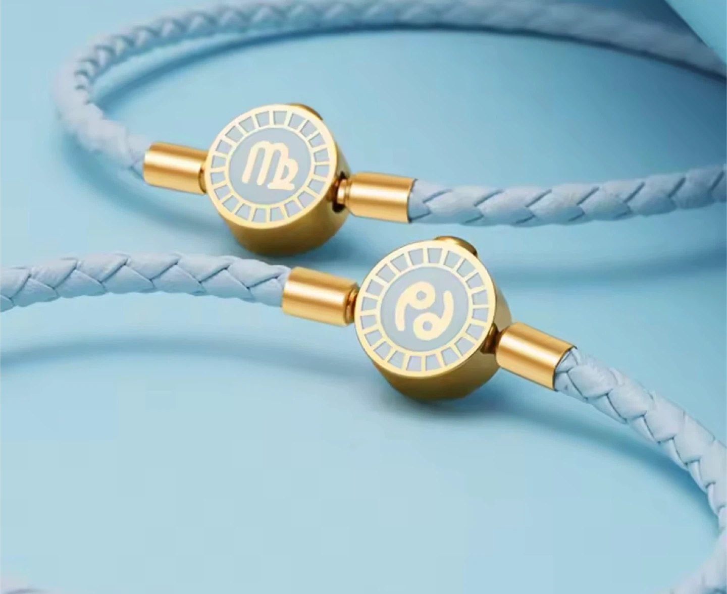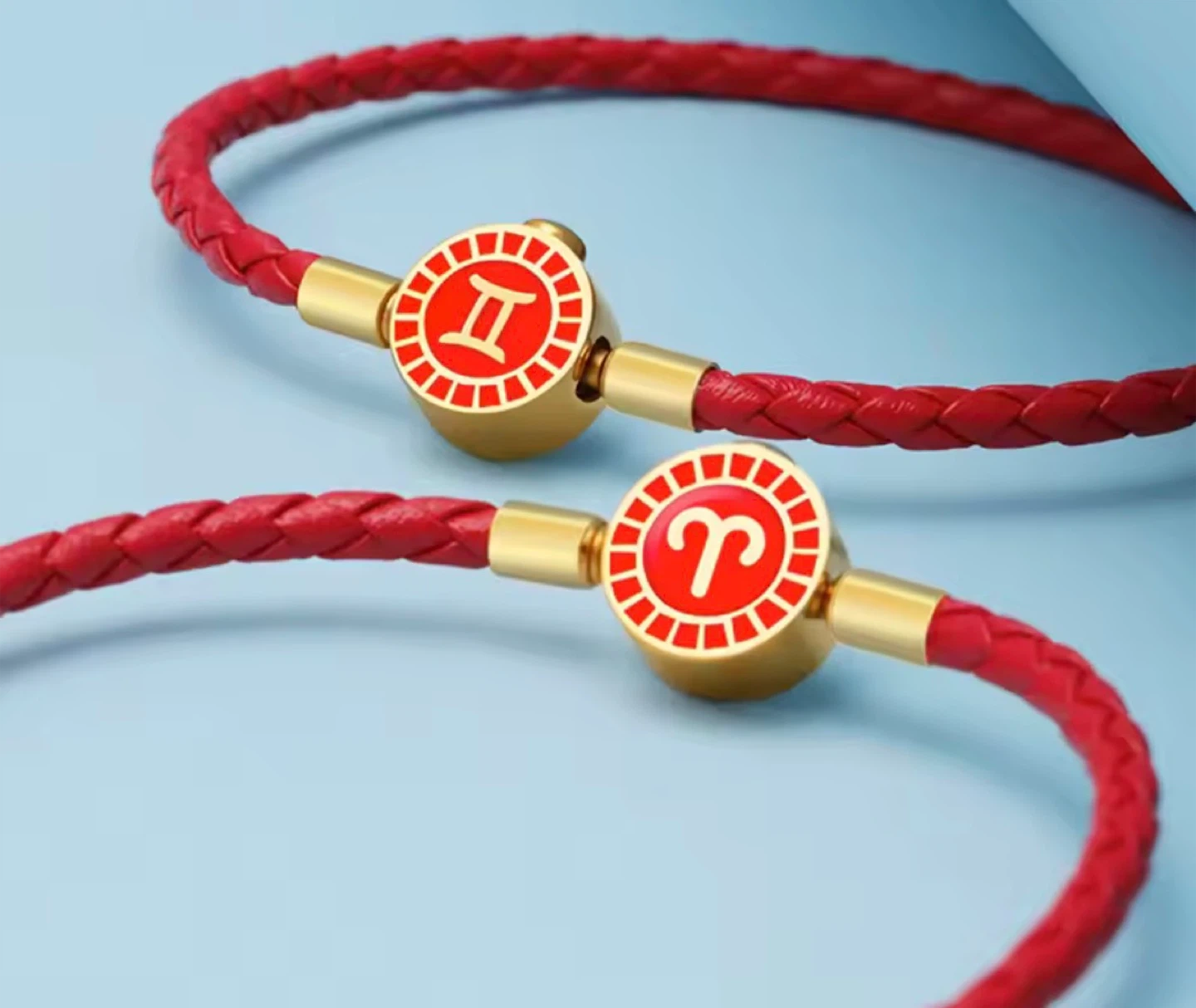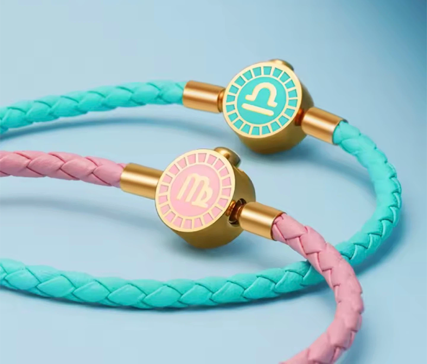 Showcase your zodiac sign with these stylish charm bracelets. Each bracelet features a unique, gold-toned charm with a colourful enamel zodiac symbol and a braided faux leather band. Multiple colours and signs are shown, you can pick your favourite!