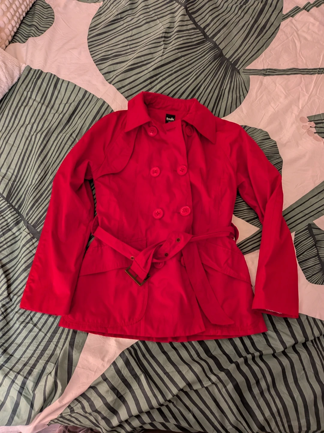 Twik Red Double-Breasted Trench Coat Jacket Size M