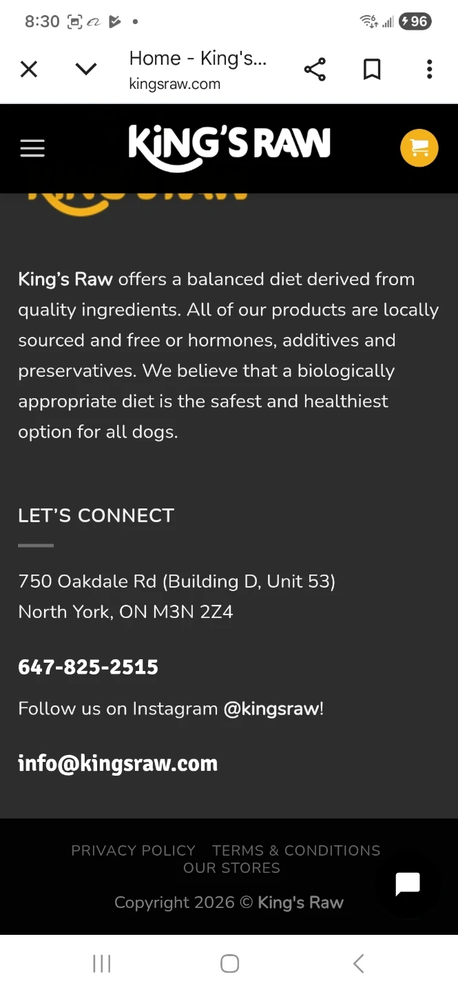 King's Raw offers a balanced diet derived from quality ingredients. Products are locally sourced and free of hormones, additives, and preservatives. This B.A.R.F. chicken is handmade in Toronto. It's a biologically appropriate diet for dogs.contac us @ info@kingsraw.com