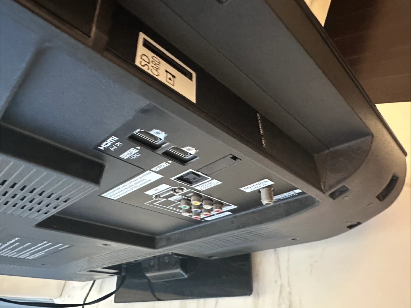 Panasonic television. It's a black flat-screen TV. It has multiple HDMI inputs, PC input, and component audio/video in.