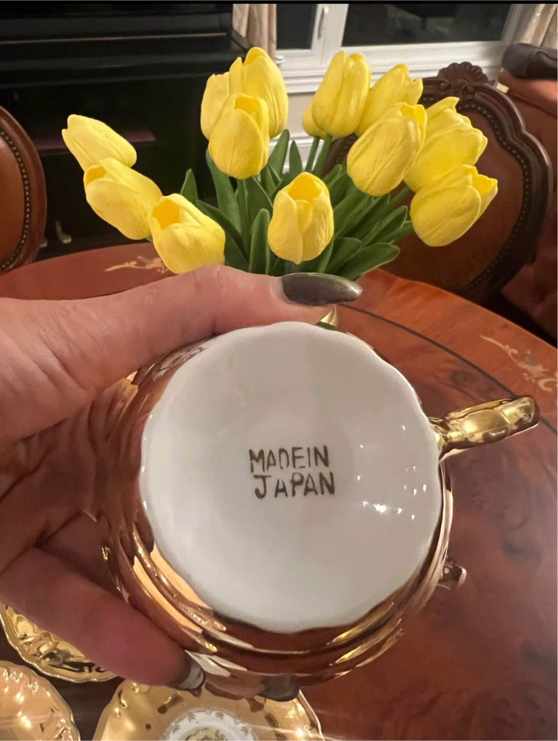Set of 6 Gold Porcelain Teacups and Saucers - Made in Japan