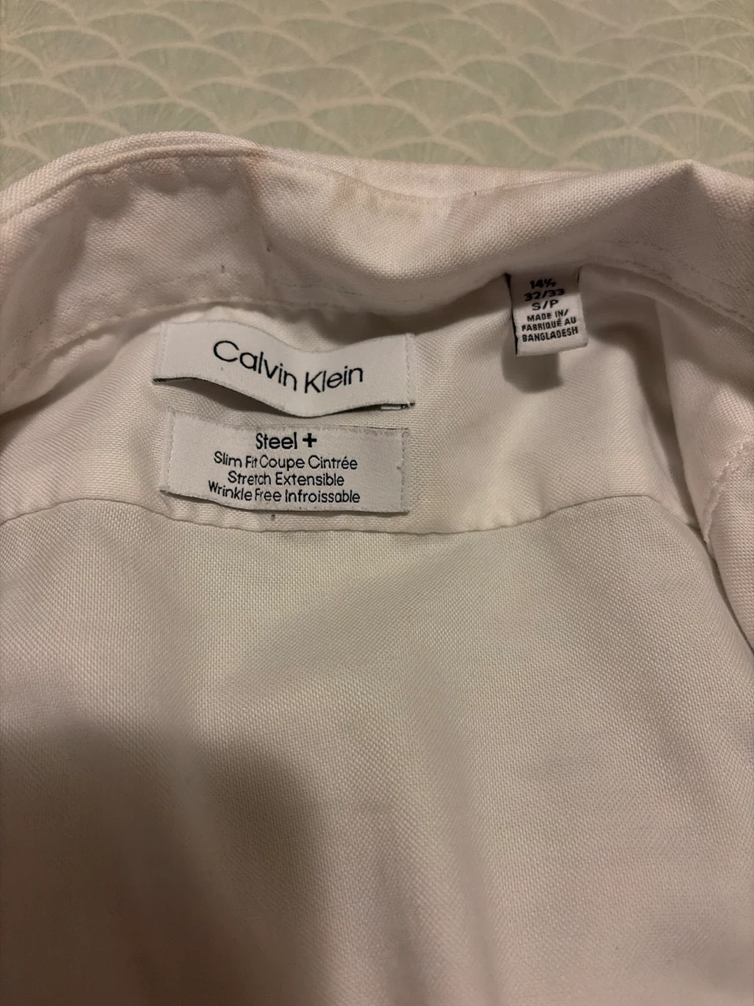 Calvin Klein Steel dress shirt. Slim fit style with stretch fabric. It's wrinkle-free and wrinkle-resistant. Comes in a size S/P.