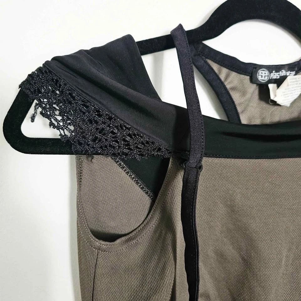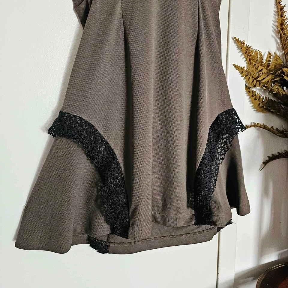 Plastik Wrap Goth Mini Dress XS Olive Green Black Lace