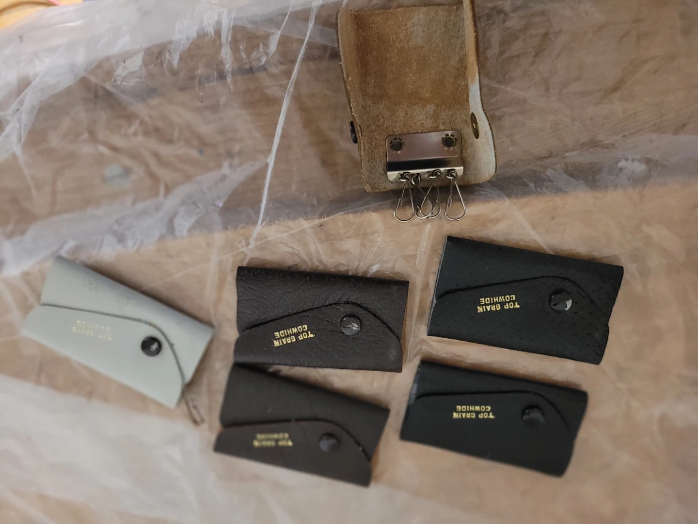 For sell is This set of six top grain cowhide key holders. They're made of genuine leather. They offer a classic way to keep your keys organized.