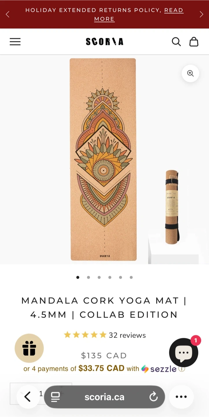 This is a Scoria Mandala Cork Yoga Mat. It's 4.5mm thick. This mat offers a good grip for your practice.