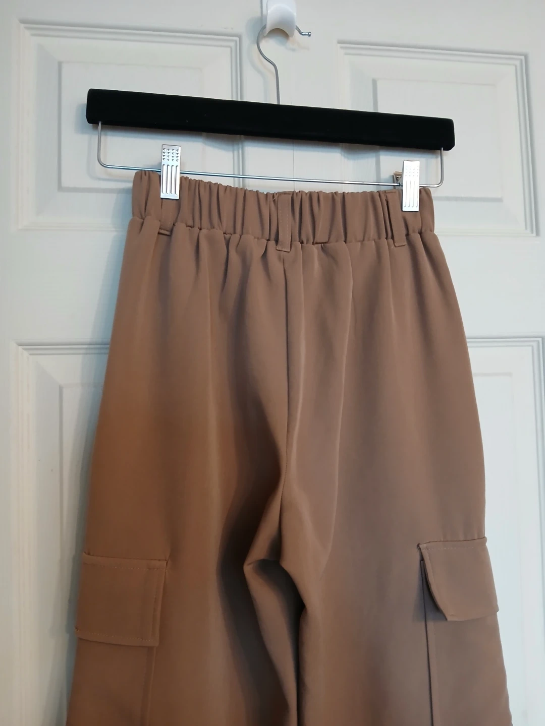 Type: cargo style pants with elastic waist, button to close, functional pockets