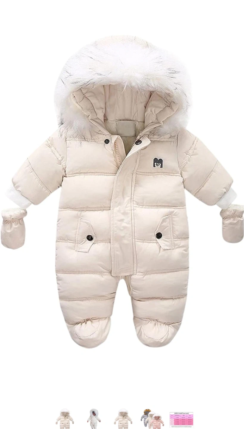 Baby Snowsuit Winter Puffer Snowsuit Cream White