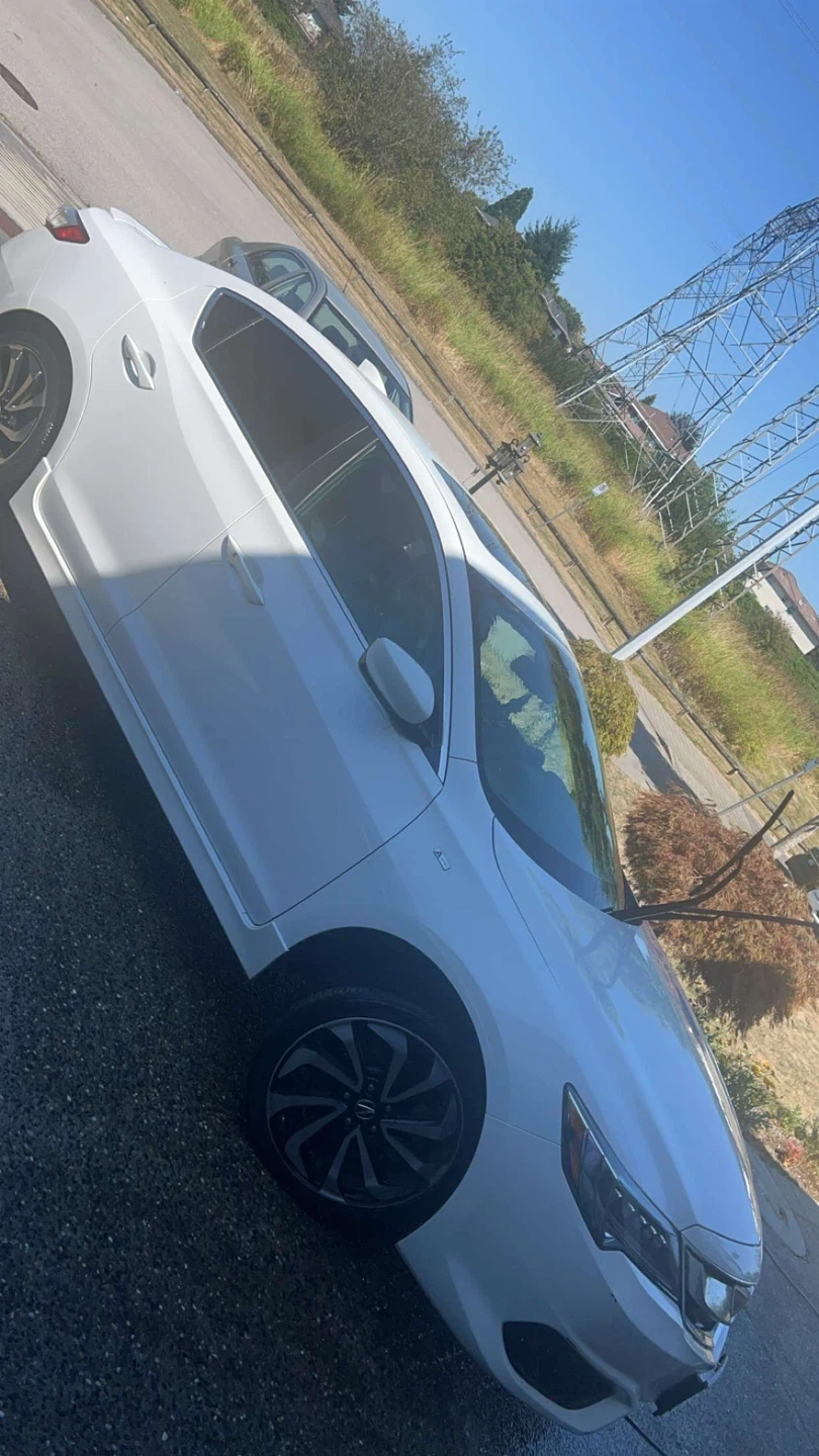 This is a white 4-door Acura ILX sedan. It features alloy wheels and has a clean exterior. A great choice for daily commuting or longer trips!