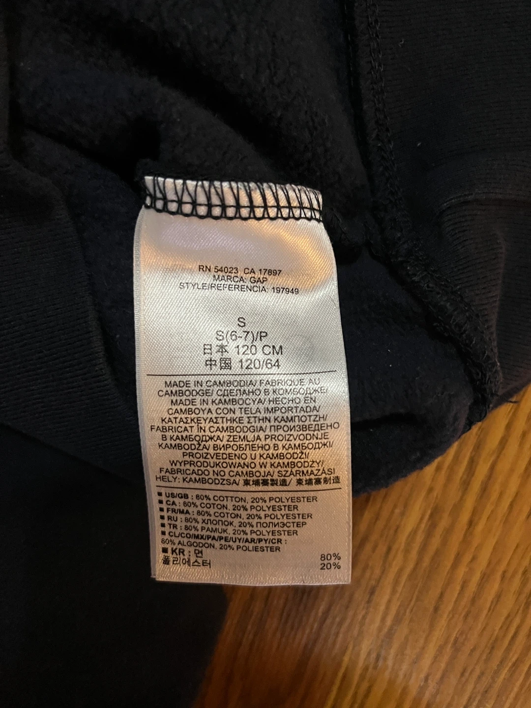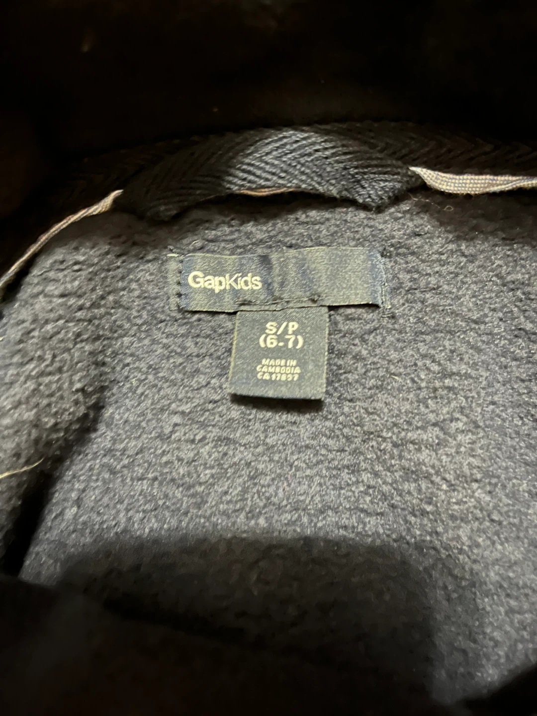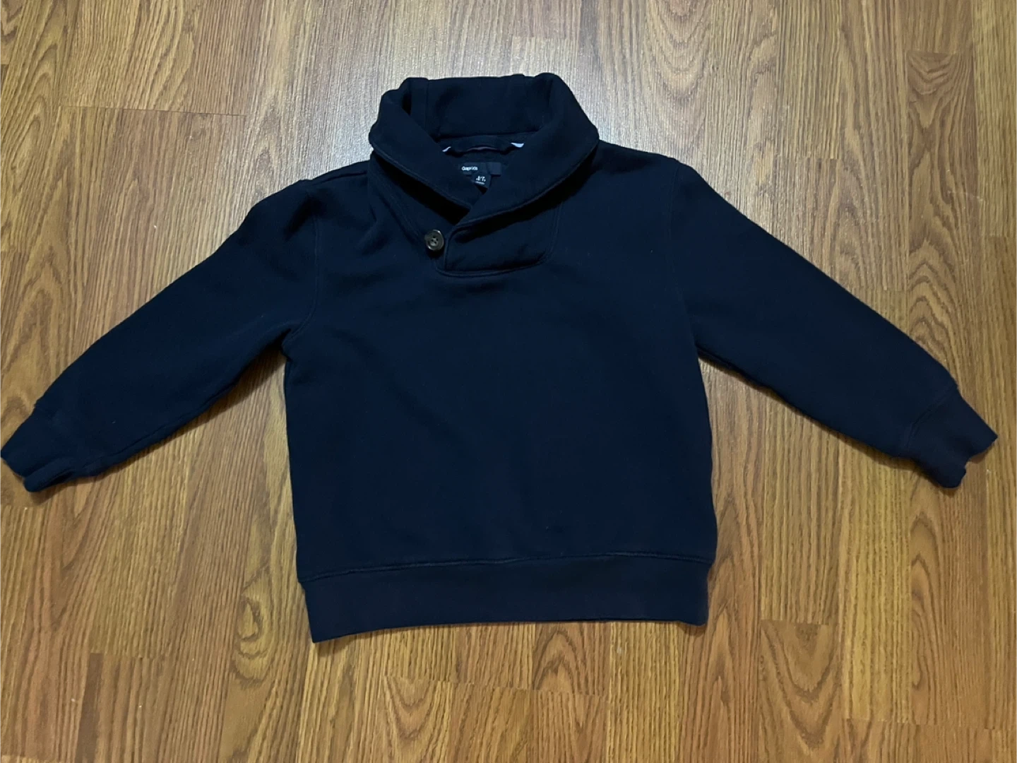 GapKids boys’ long sleeve pullover in navy blue. Sweatshirt-style fabric with a shawl collar neckline that has a button and loop closure. Minimal design with ribbed cuffs and waist for a classic, preppy look.